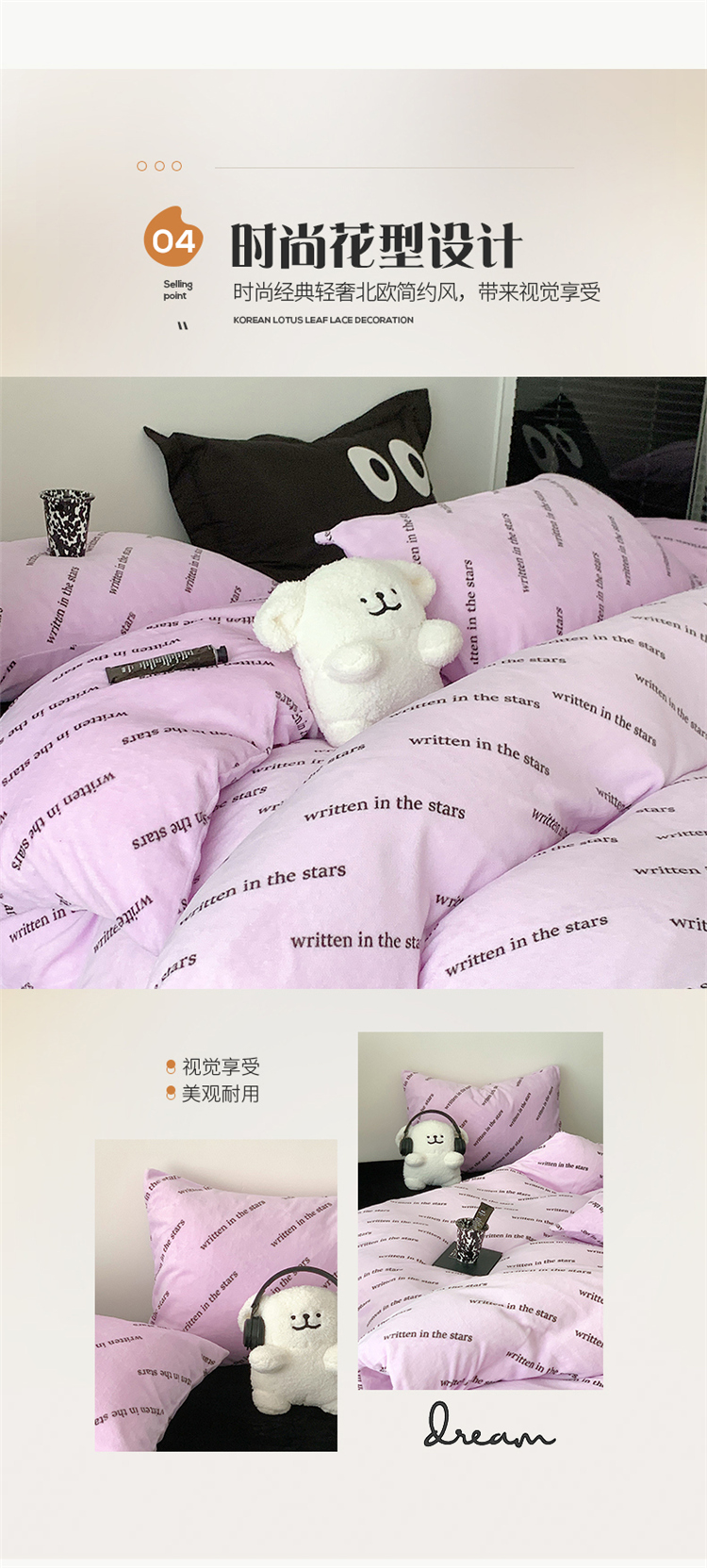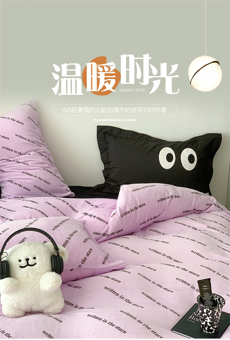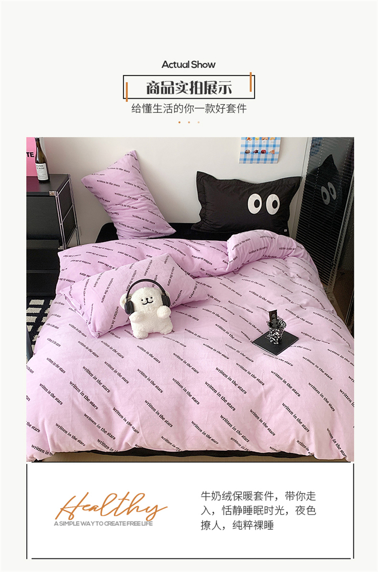 商品名称:2024新款时尚高级经典轻奢北欧简约加厚200克牛奶绒四件套 绒-百特紫黑