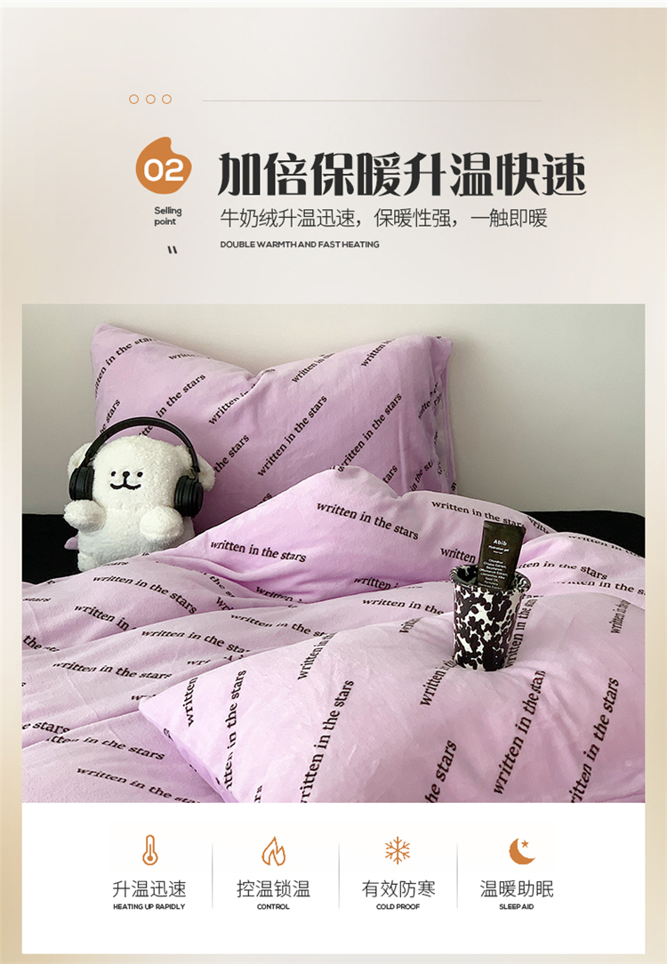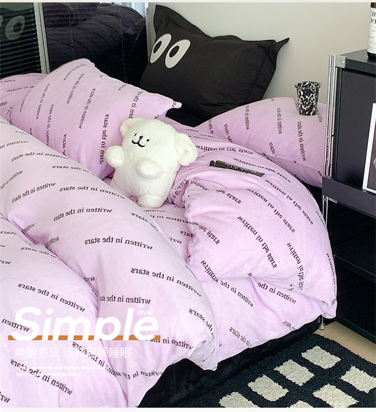 2024新款时尚高级经典轻奢北欧简约加厚200克牛奶绒四件套 绒-百特紫黑