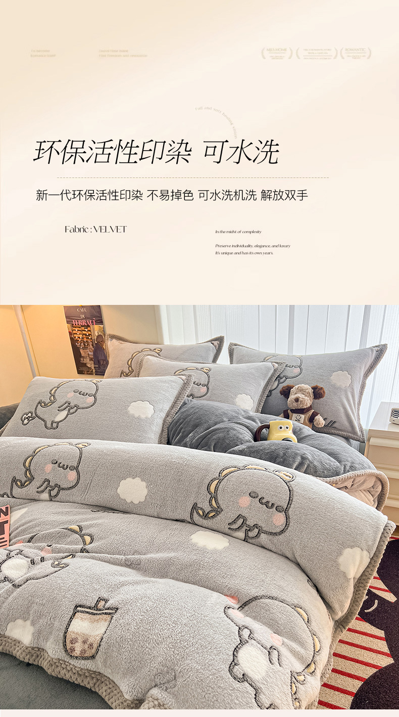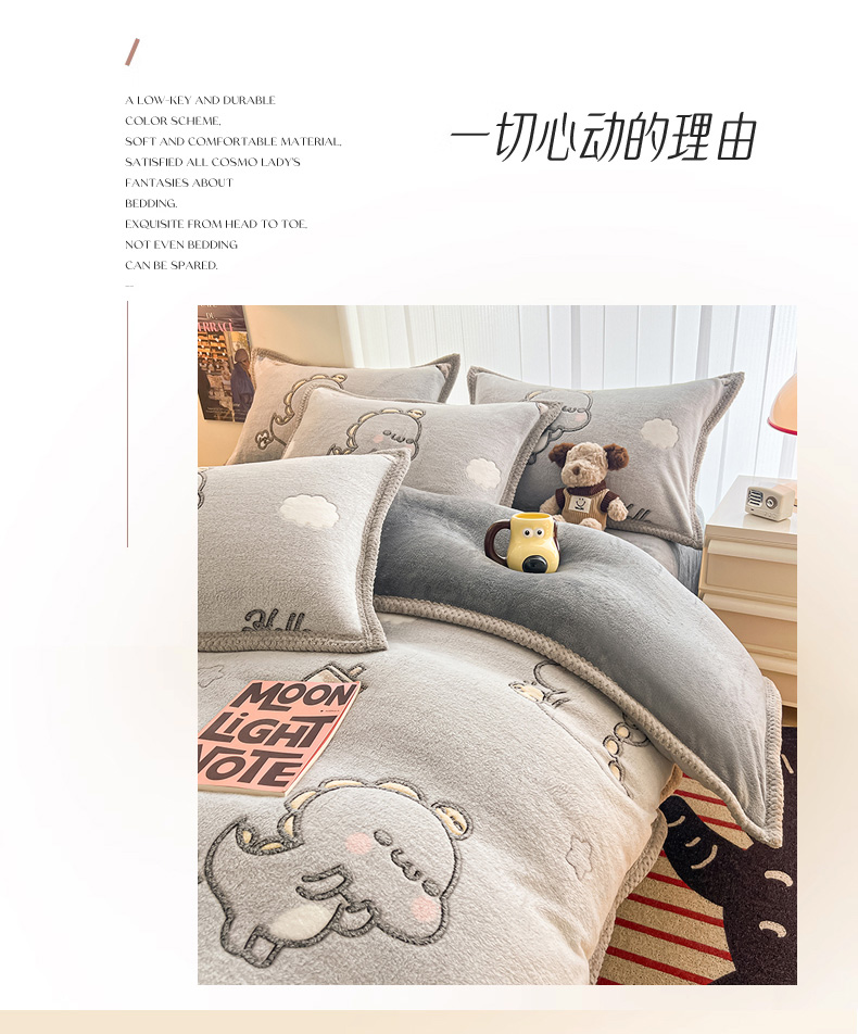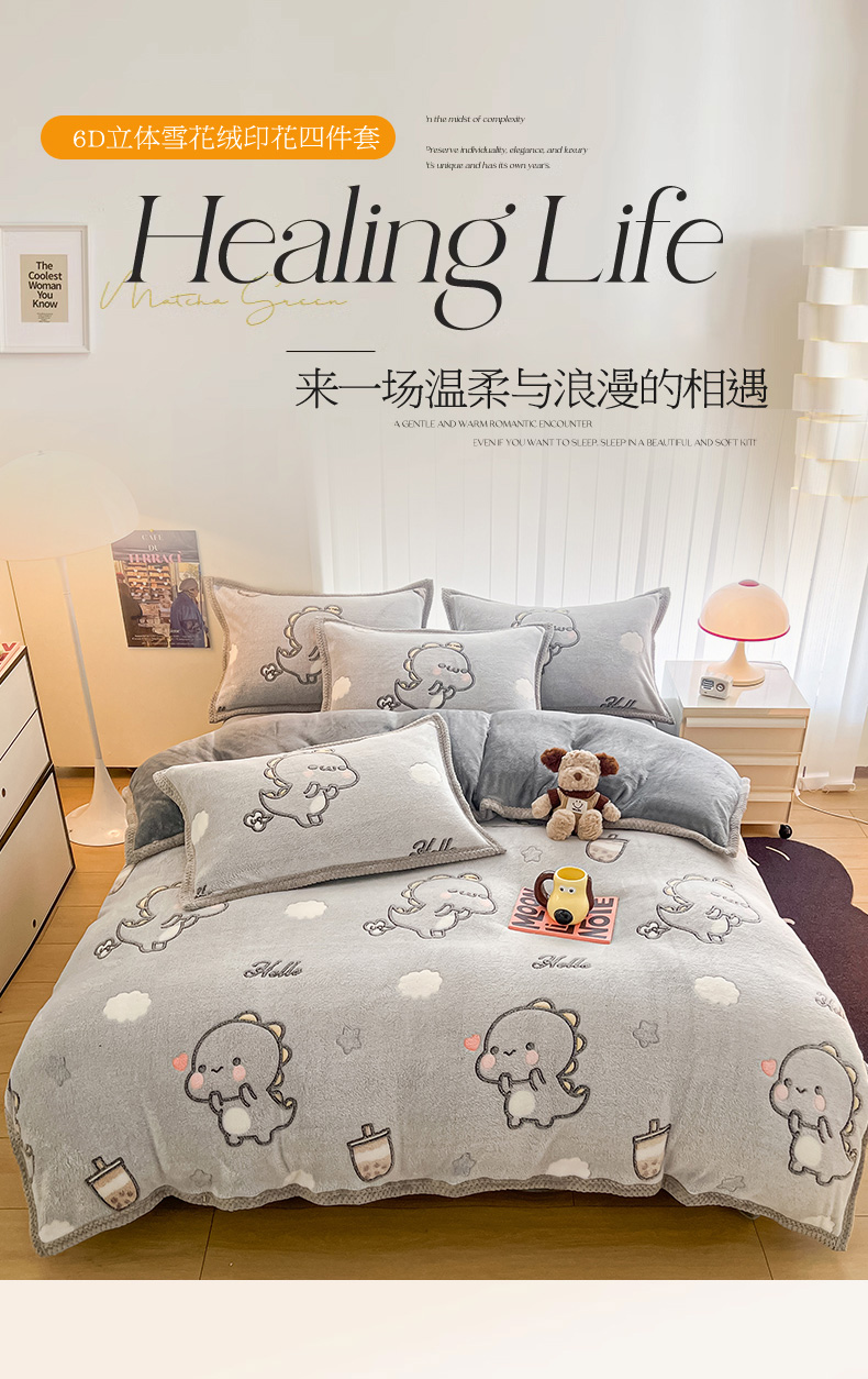 当前位置: 91家纺网 > 商品网购 > 床品套件 > 四件套 > 其它四件套 > 倾慕家纺 2024新款加厚保暖6D立体雪花绒系列-四件套 奶茶小龙灰