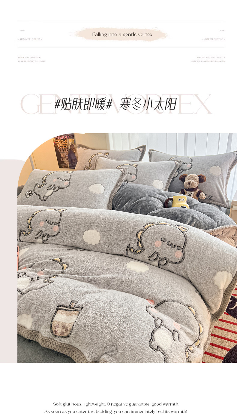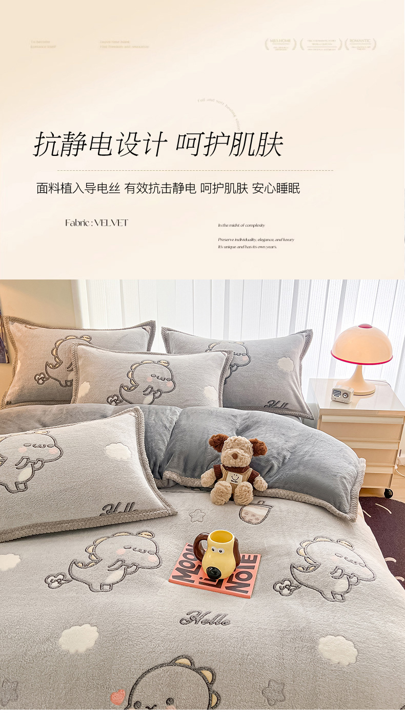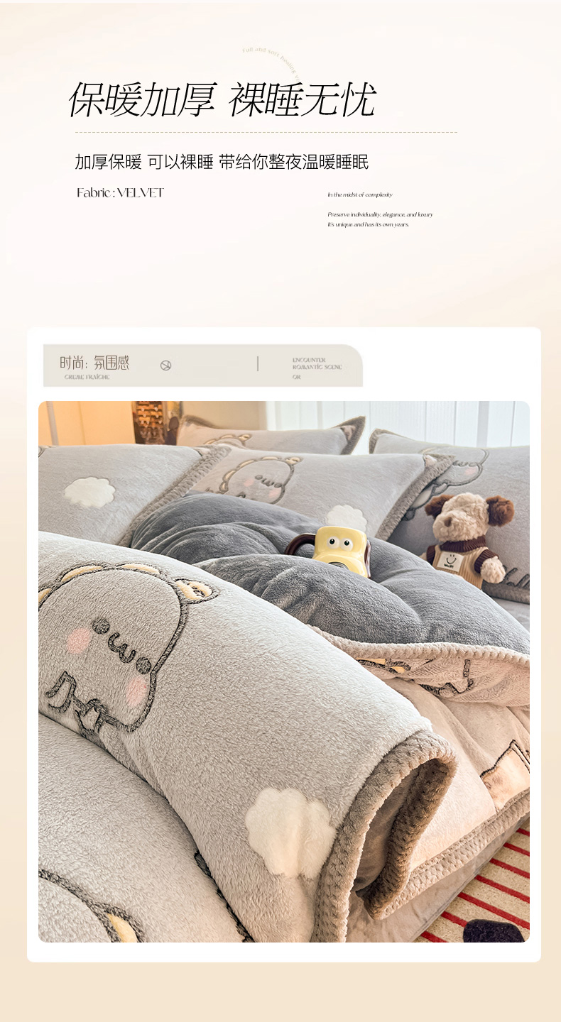 当前位置: 91家纺网 > 商品网购 > 床品套件 > 四件套 > 其它四件套 > 倾慕家纺 2024新款加厚保暖6D立体雪花绒系列-四件套 奶茶小龙灰