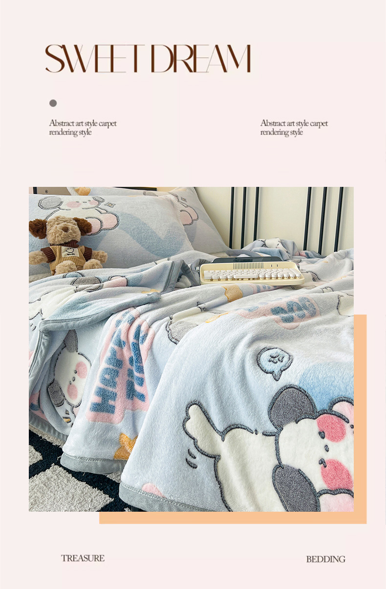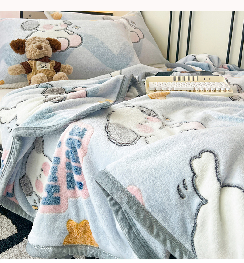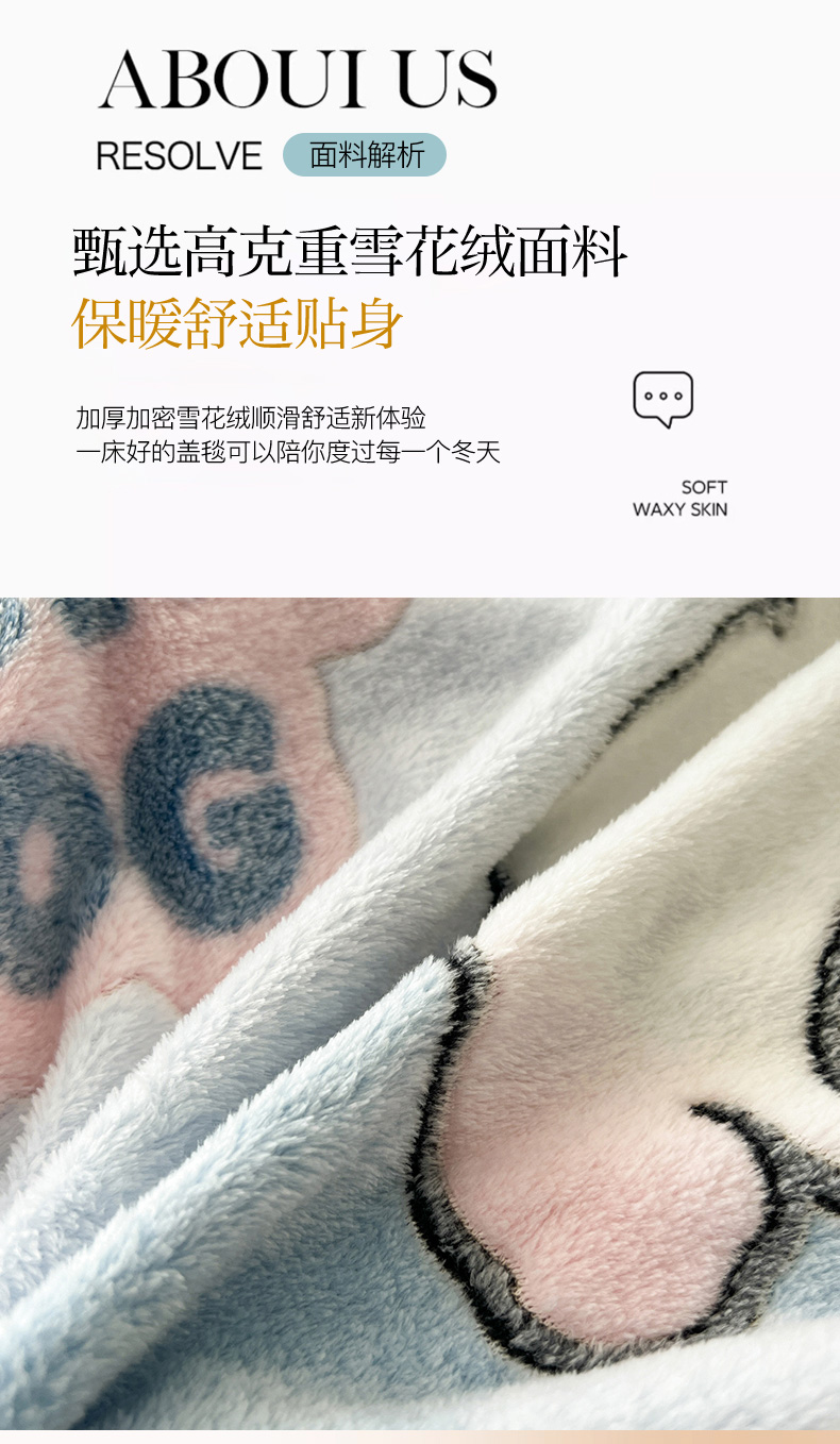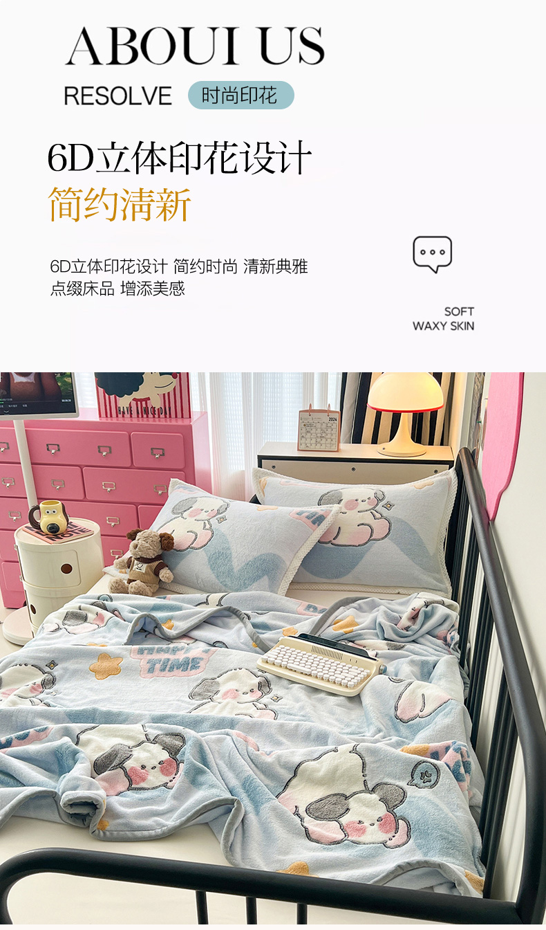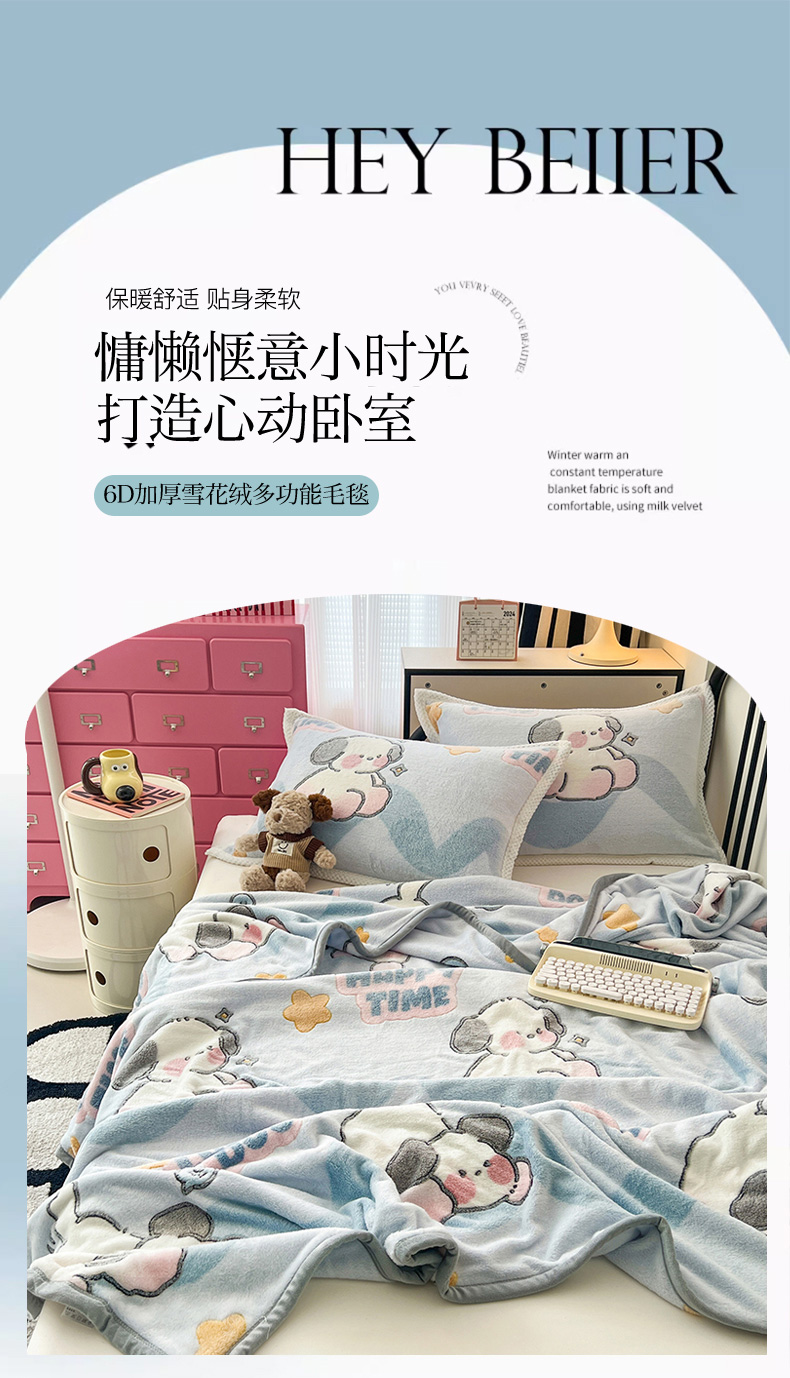 倾慕家纺 2024新款加厚保暖6D立体雪花绒系列-毛毯 时光小狗