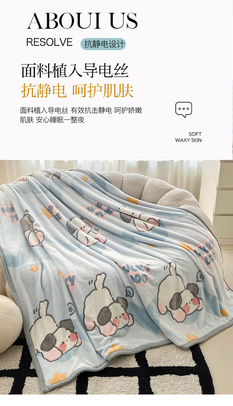 商品名称:倾慕家纺 2024新款加厚保暖6D立体雪花绒系列-毛毯 时光小狗