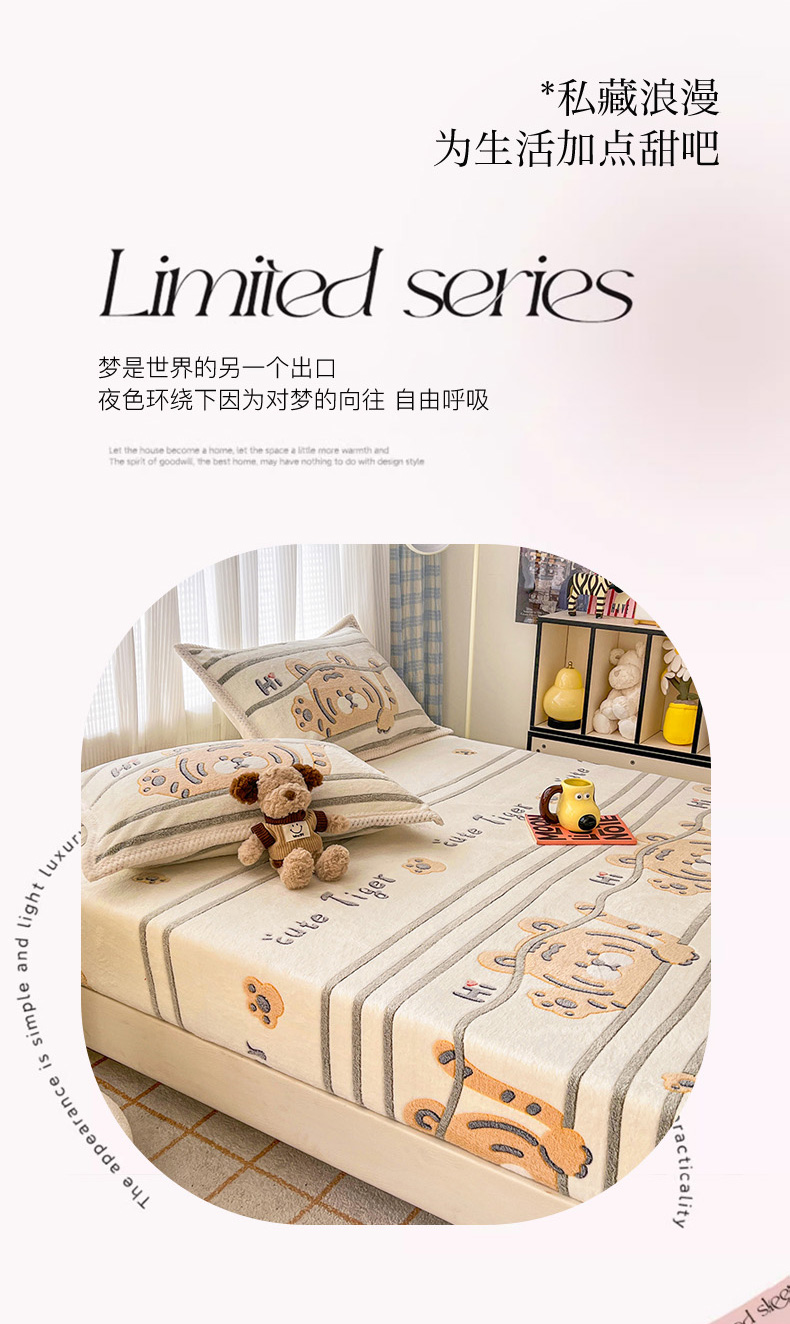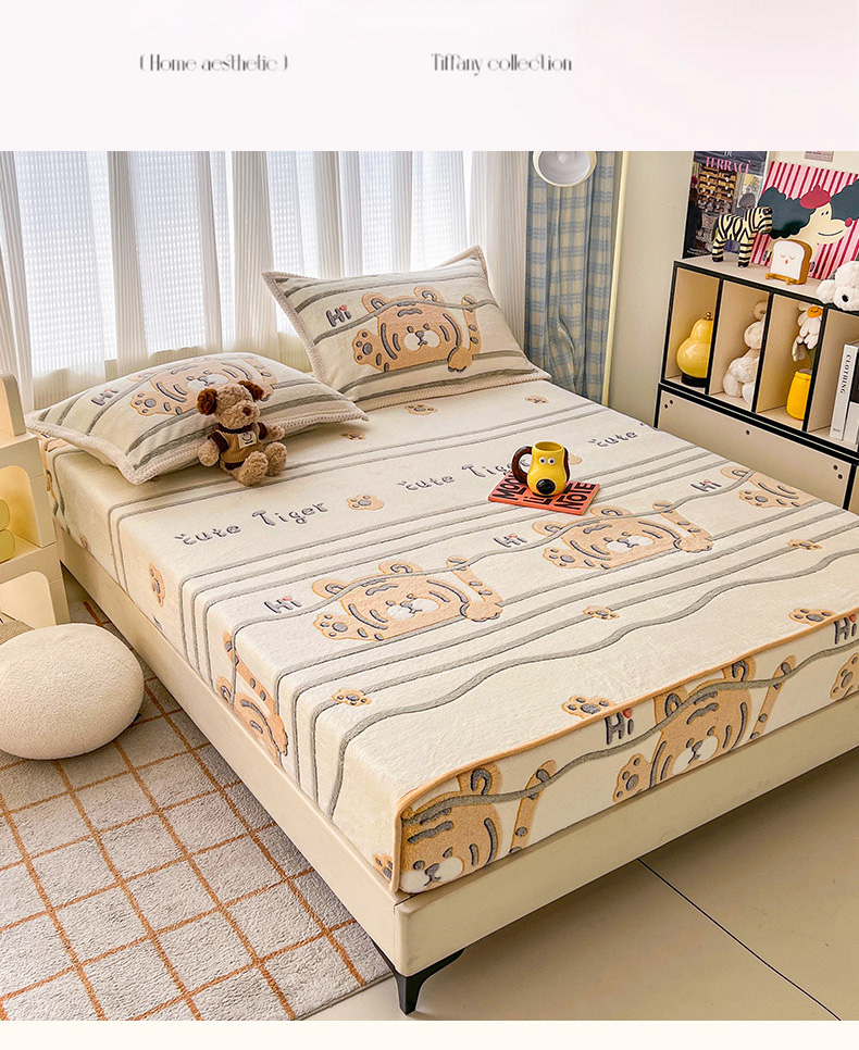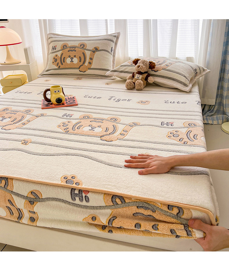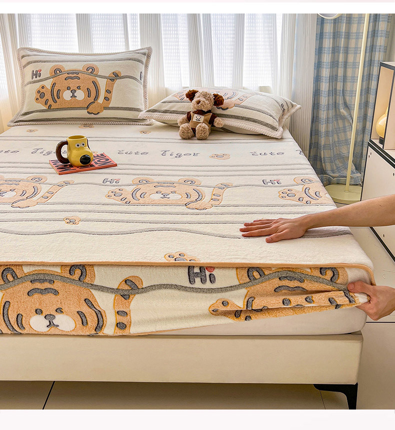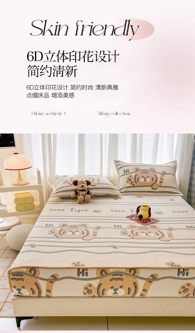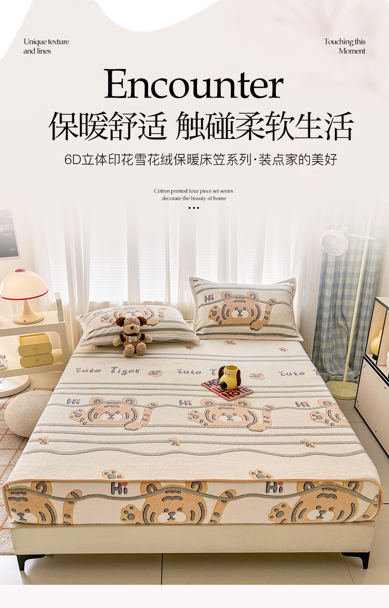倾慕家纺 2024新款加厚保暖6D立体雪花绒系列-单床笠 欢乐小虎