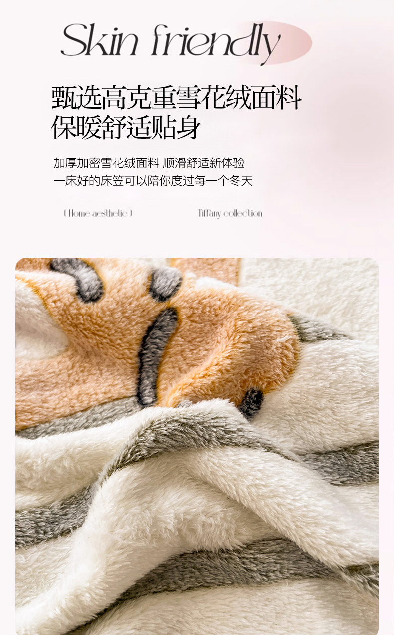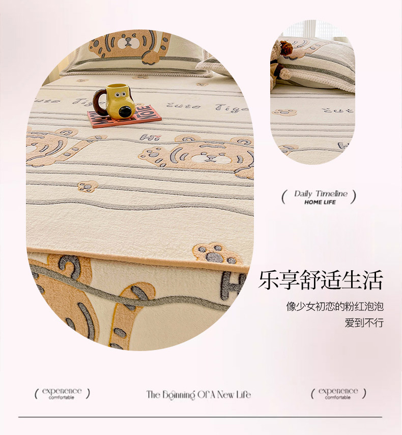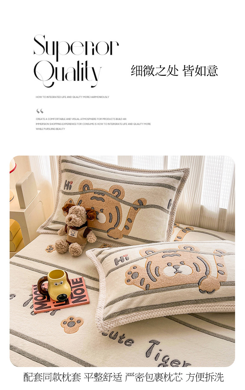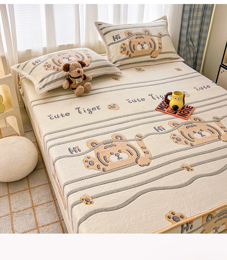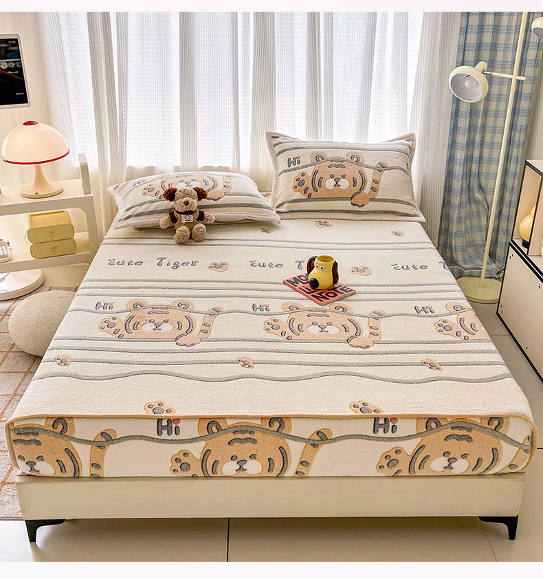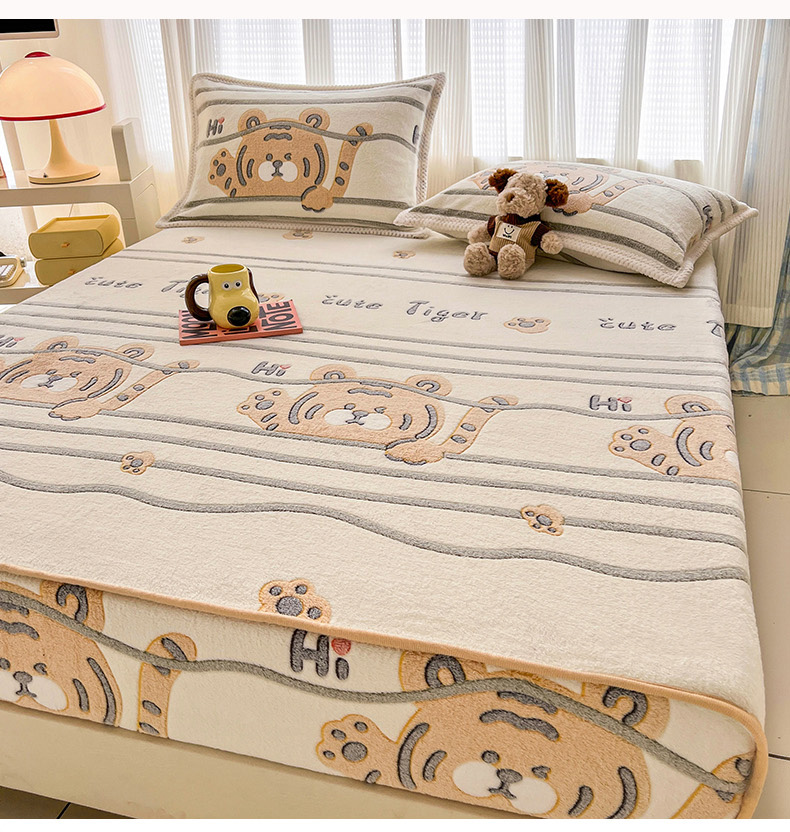倾慕家纺 2024新款加厚保暖6D立体雪花绒系列-单床笠 欢乐小虎