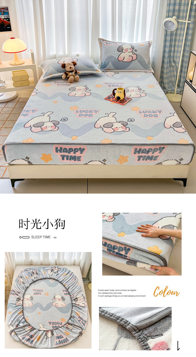 商品名称:倾慕家纺 2024新款加厚保暖6D立体雪花绒系列-单床笠 欢乐小虎