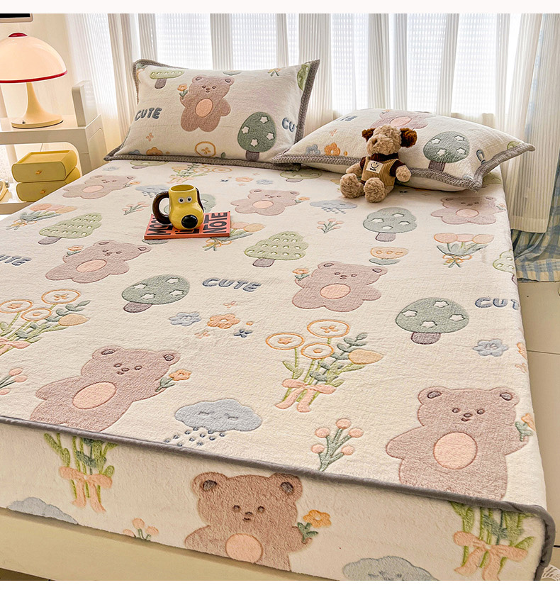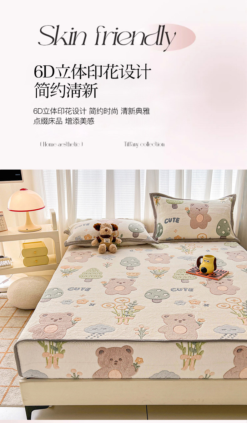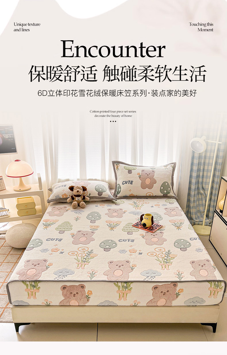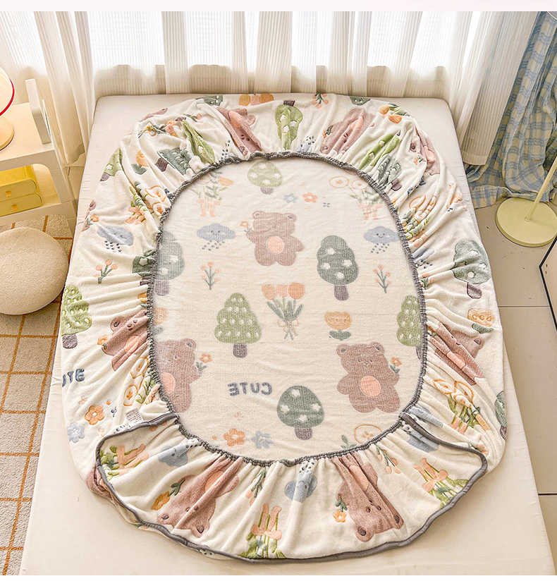 倾慕家纺 2024新款加厚保暖6D立体雪花绒系列-单床笠 森林公园