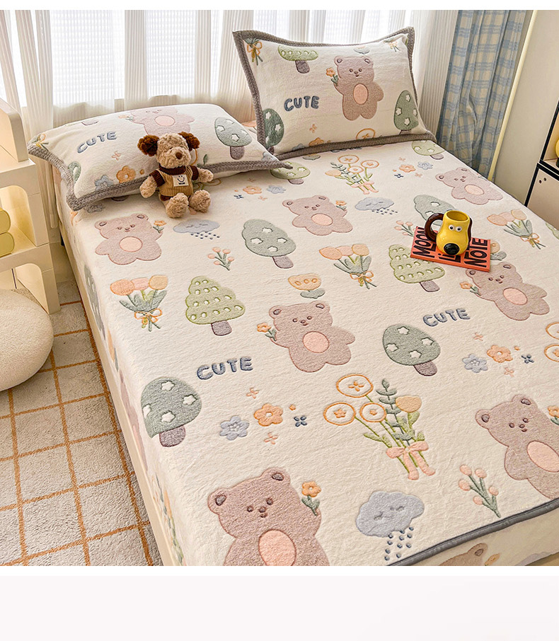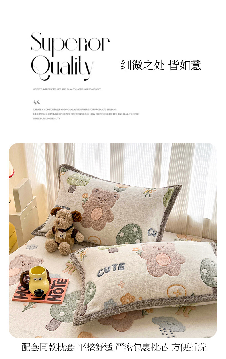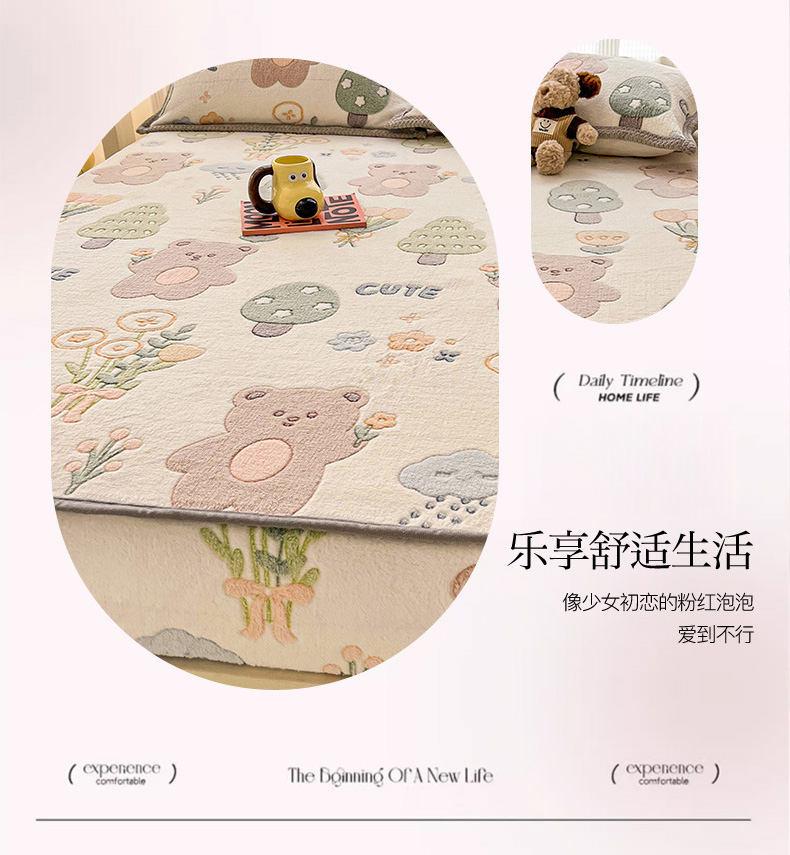 (总)倾慕家纺 2025新款卡通毛巾绣加厚保暖牛奶绒四件套,爱心女孩,咖啡小狗,猫咪熊兔,迷你小车,圣诞树熊,音乐企鹅
