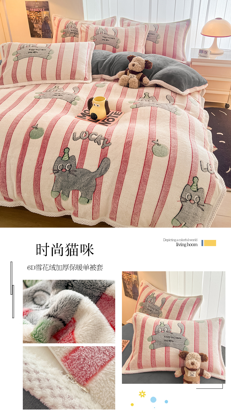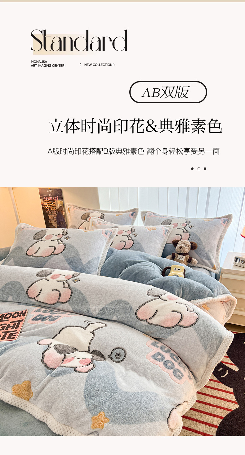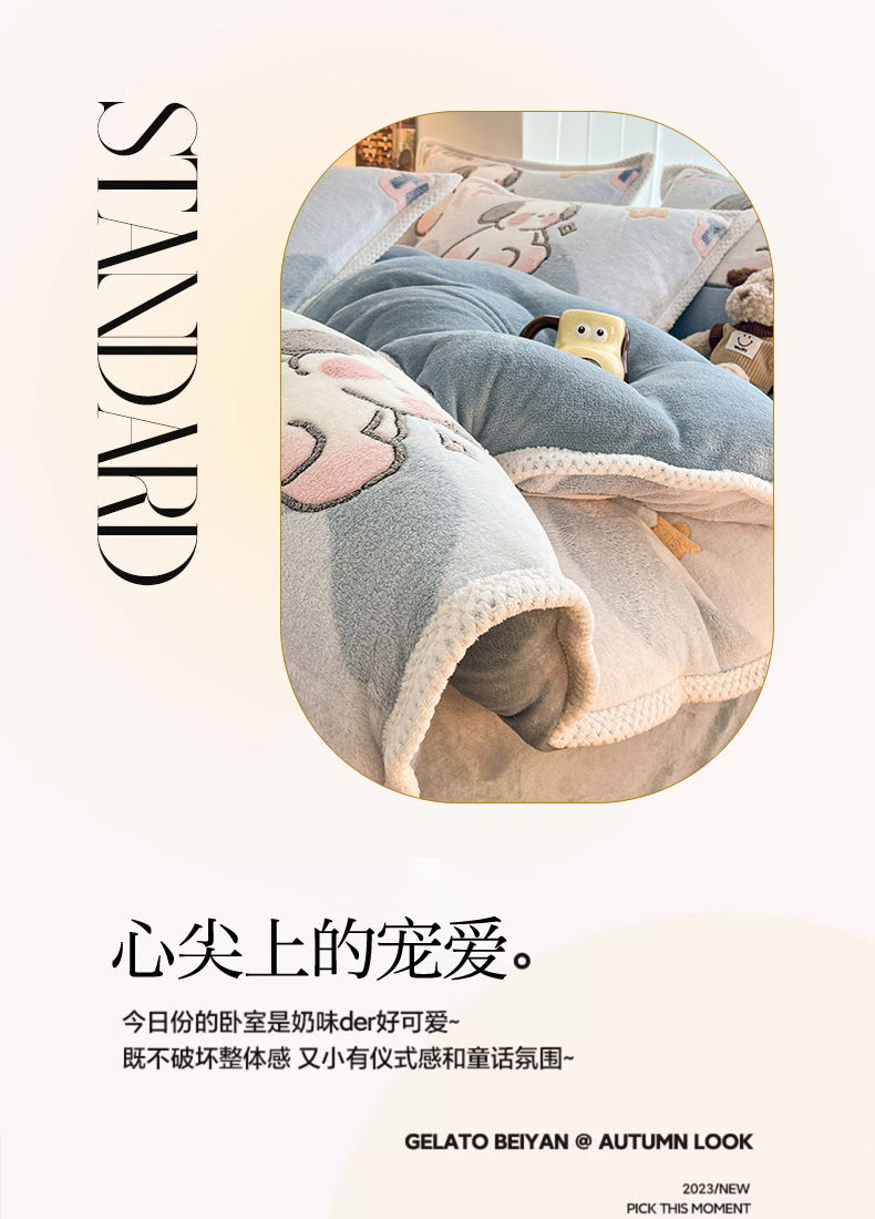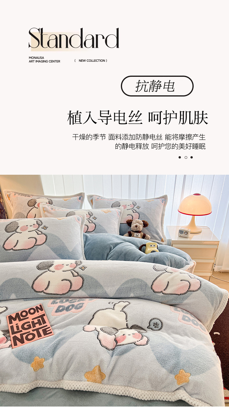(总)倾慕家纺 2025新款卡通毛巾绣加厚保暖牛奶绒四件套,爱心女孩,咖啡小狗,猫咪熊兔,迷你小车,圣诞树熊,音乐企鹅