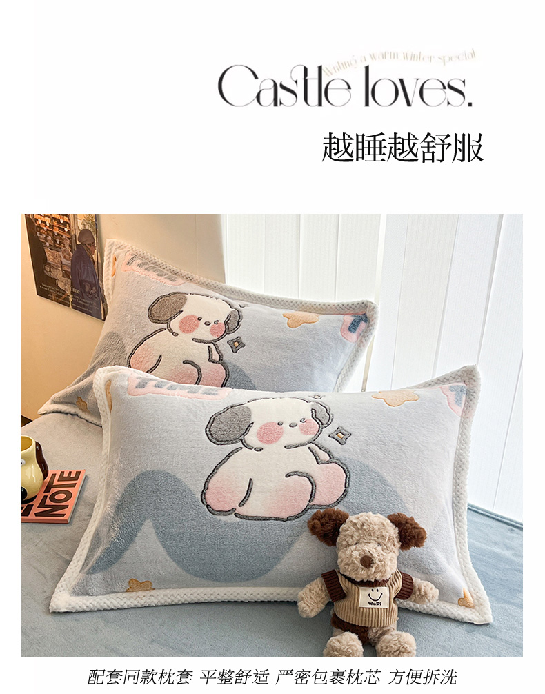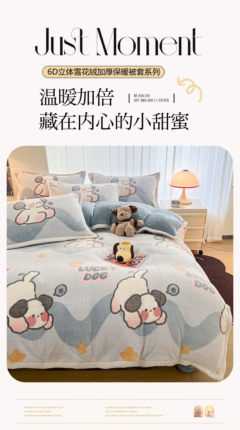 商品名称:倾慕家纺 2024新款加厚保暖6D立体雪花绒系列-单被套 时光小狗
