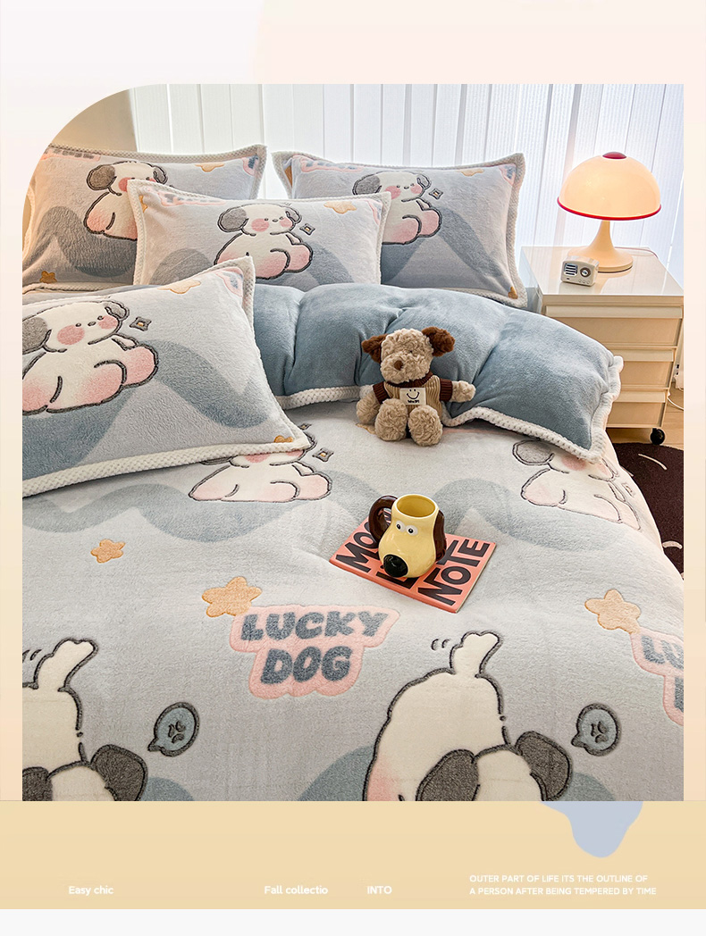 倾慕家纺 2024新款加厚保暖6D立体雪花绒系列-单被套 时光小狗