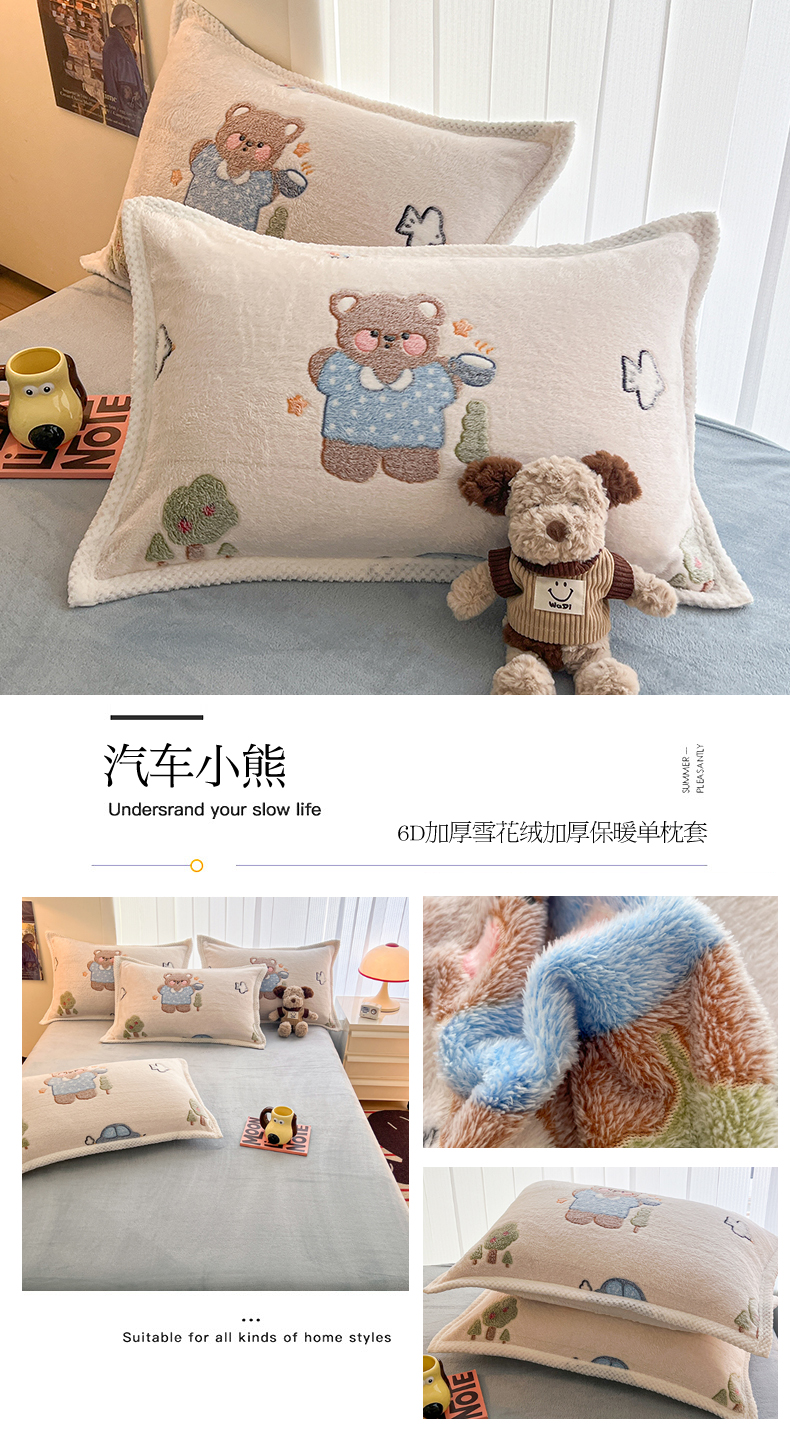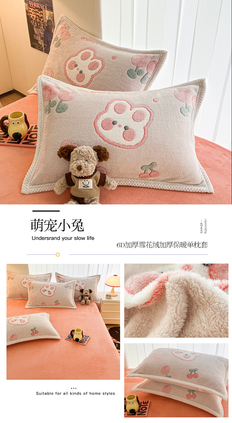 倾慕家纺 2024新款加厚保暖6D立体雪花绒系列-单枕套 花园