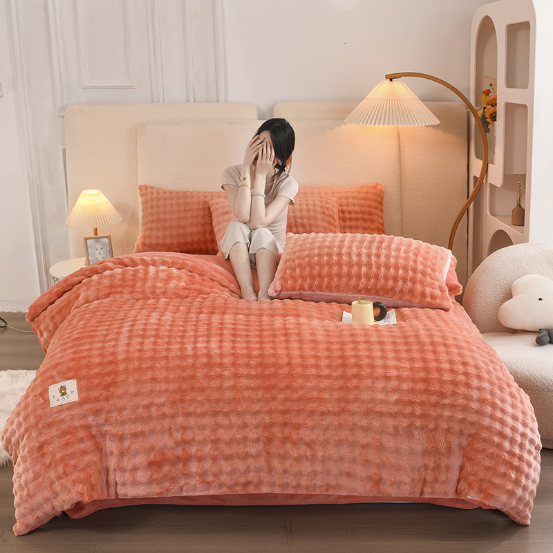 卡迪亚家纺 2024新款亲肤舒适泡泡绒四件套 果绿