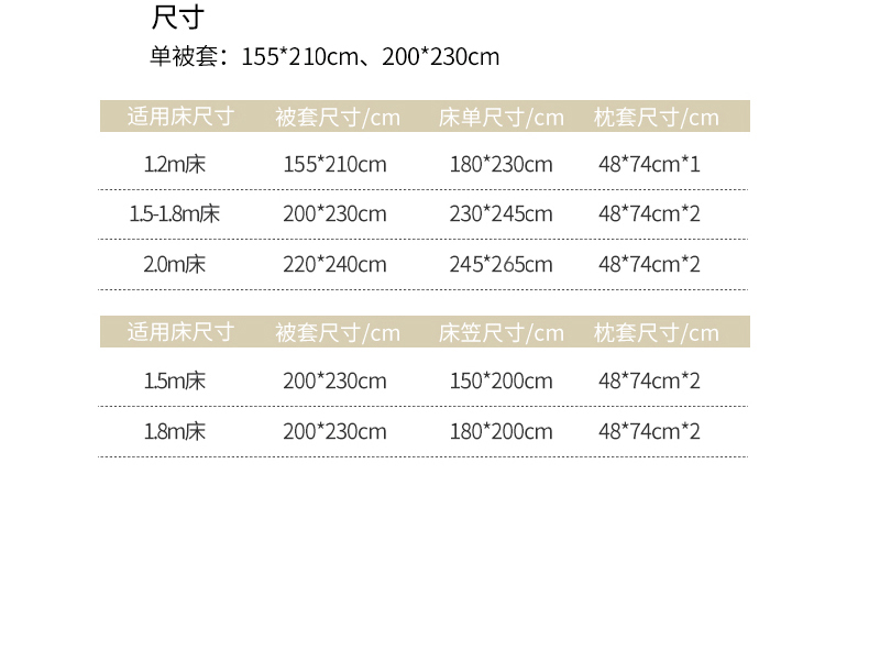 单品被套200*230cm | ¥65.00 |
