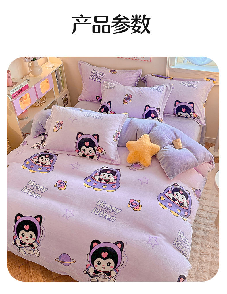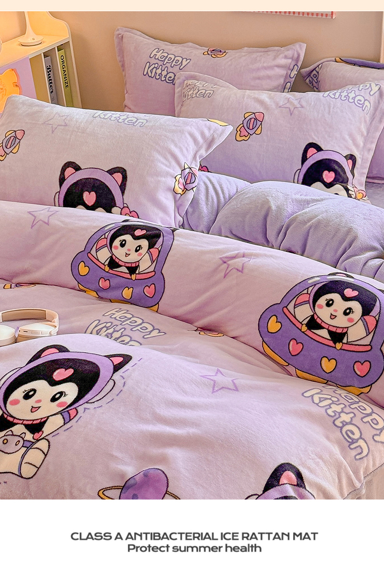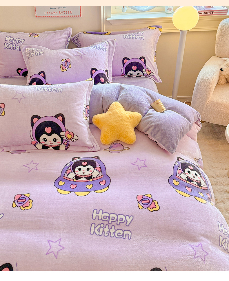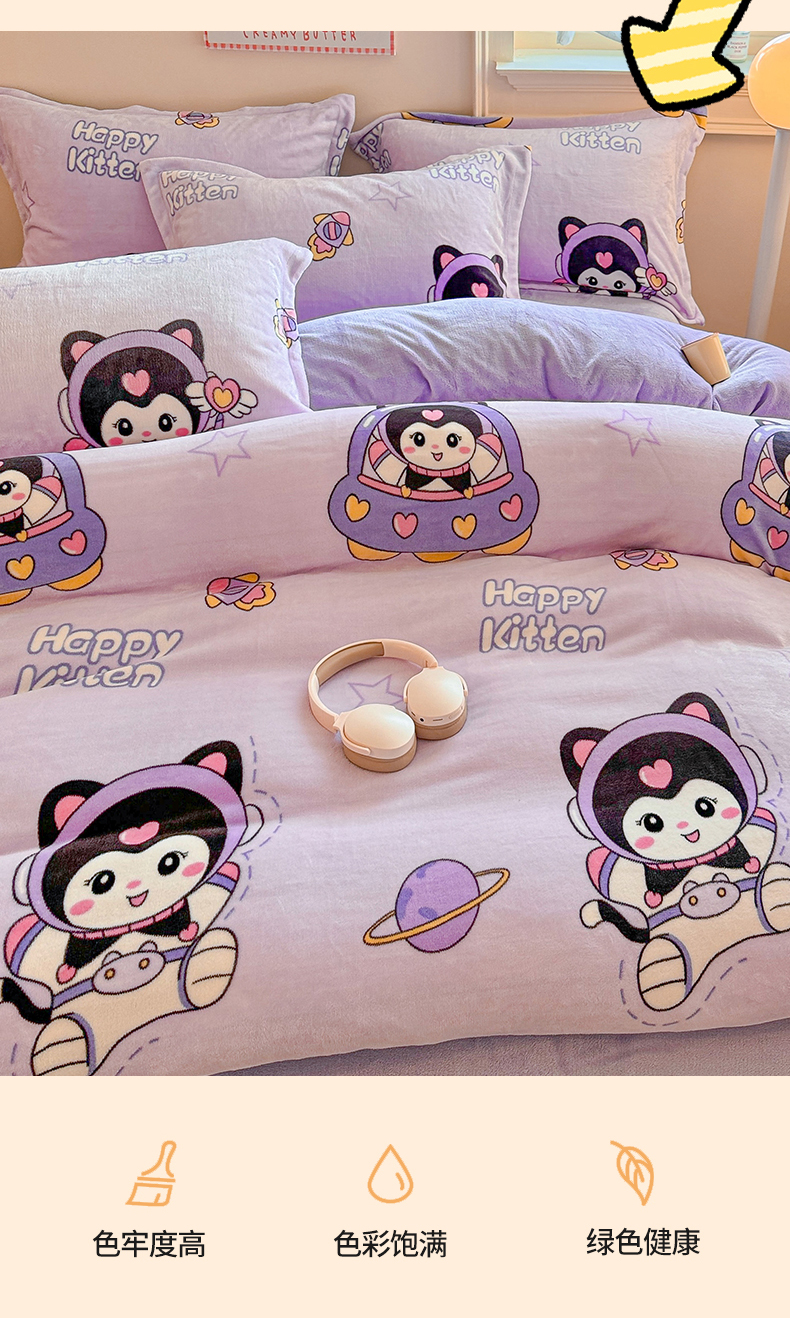 当前位置: 91家纺网 > 商品网购 > 床品套件 > 四件套 > 牛奶绒四件套 > 名兮 2024新款卡通时尚风高克重牛奶绒四件套 淘气喵