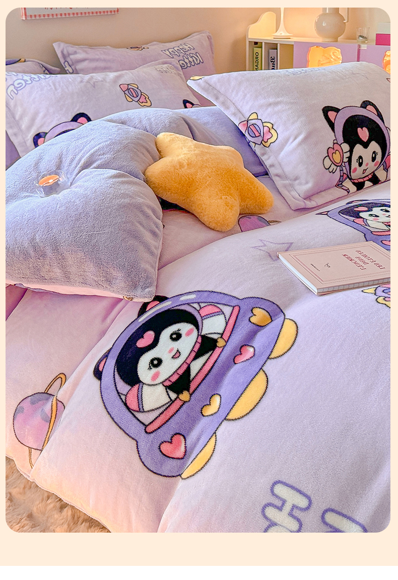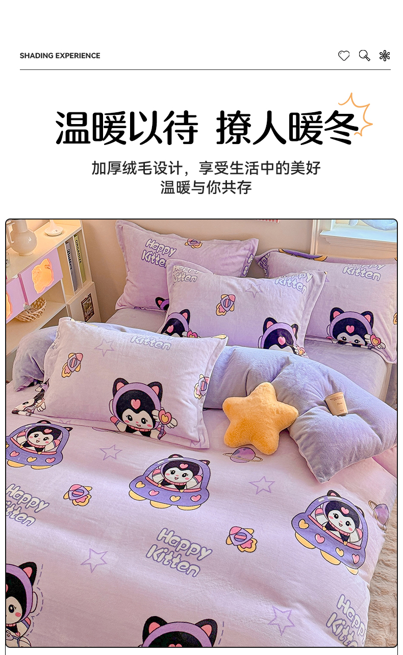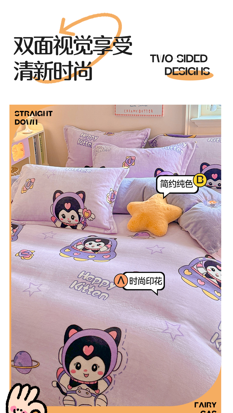 当前位置: 91家纺网 > 商品网购 > 床品套件 > 四件套 > 牛奶绒四件套 > 名兮 2024新款卡通时尚风高克重牛奶绒四件套 淘气喵