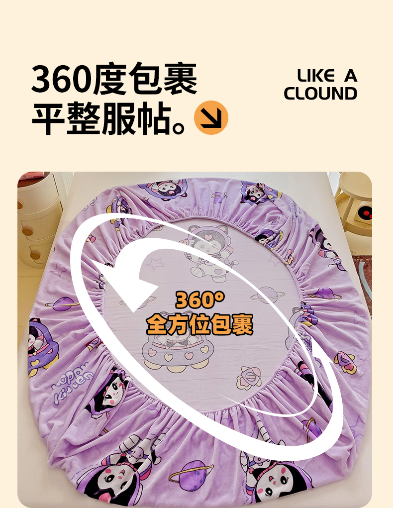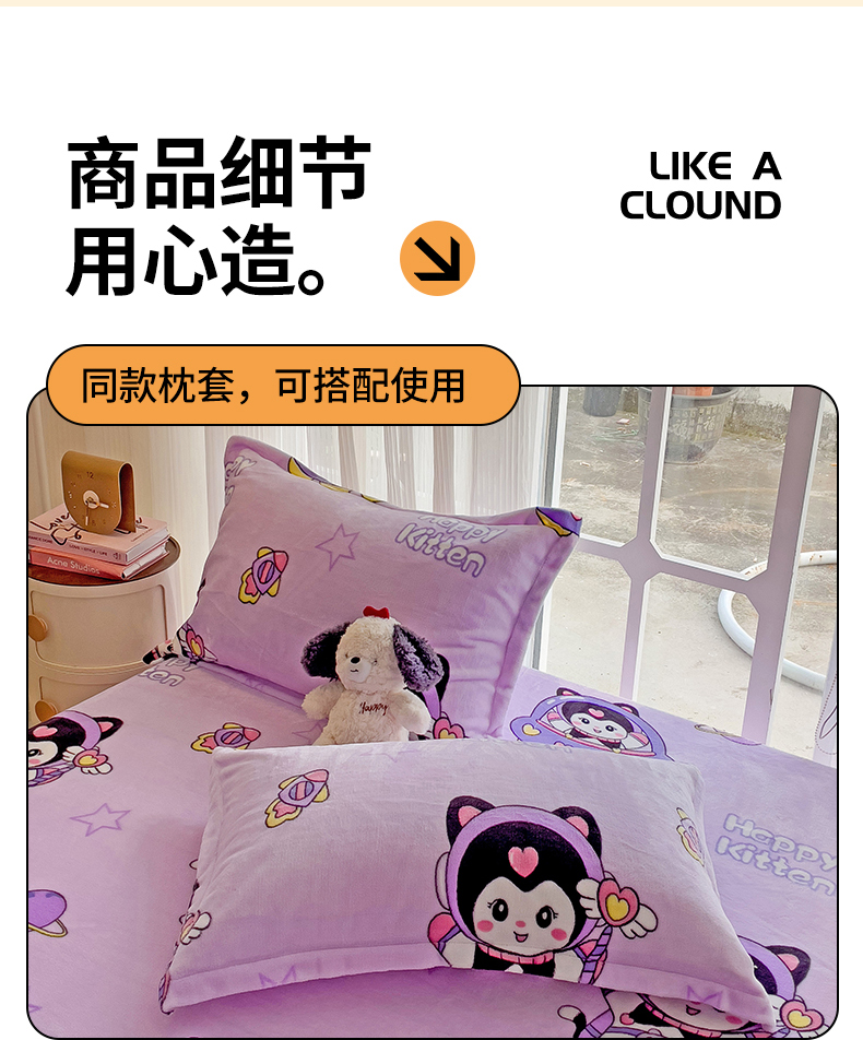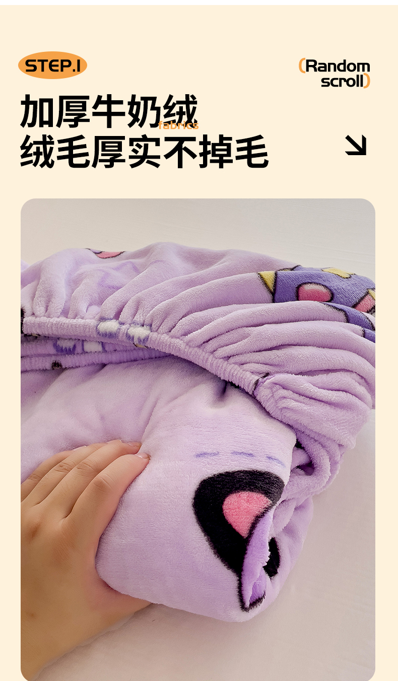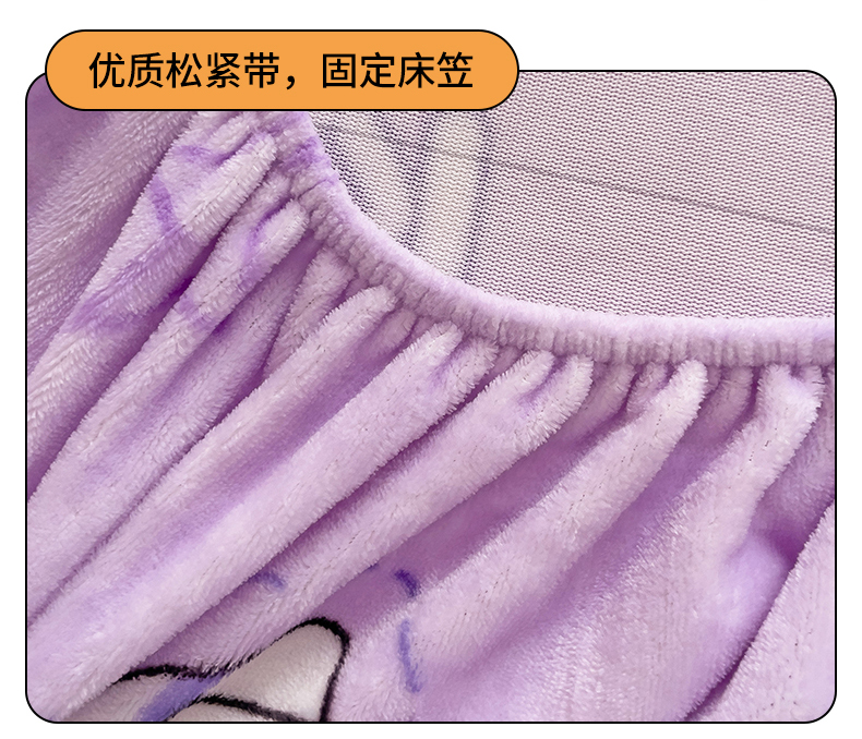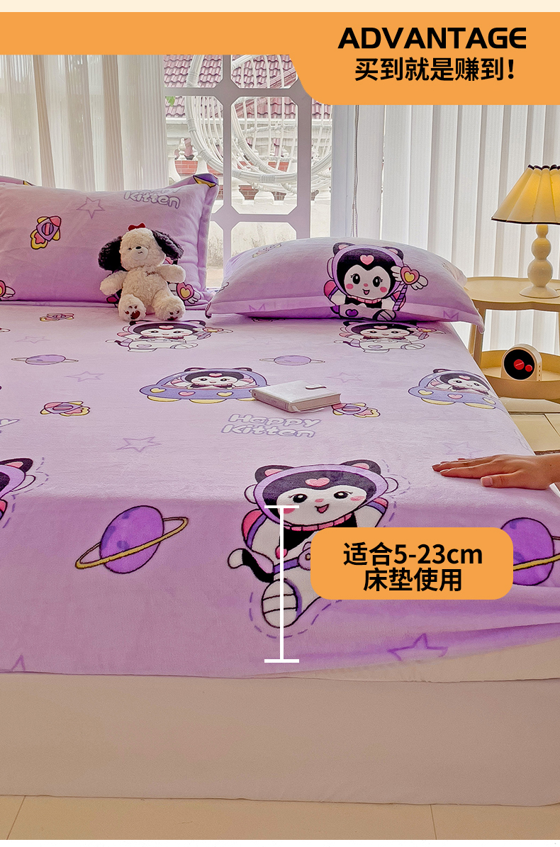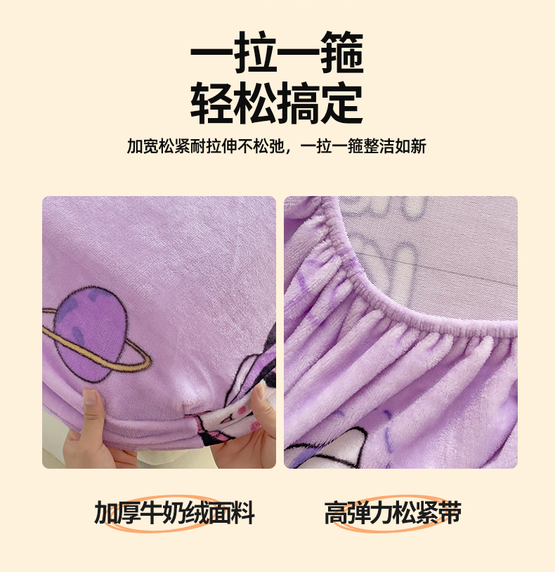 • 91家纺网 家纺一手货源 找家纺 名兮 2024卡通时尚风高克重牛奶绒床笠 淘气喵
