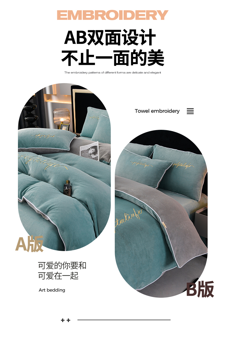 (总)氧家 2025新款高克重牛奶绒拼角刺绣床单床笠床盖款四件套-经典,经典-蓝,经典-橙,经典-豆沙,经典-灰,经典-绿,经典-奶白,经典-紫,经典-棕