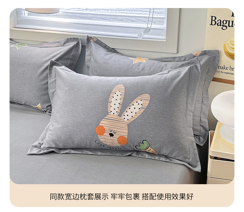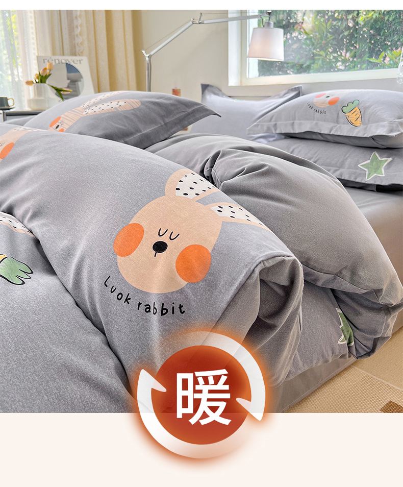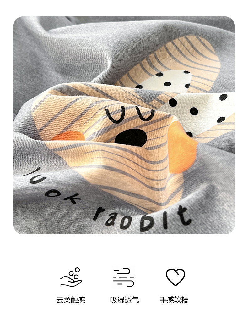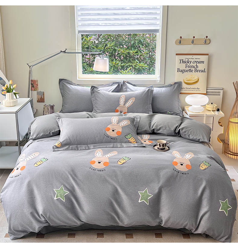 品乐家纺 2024新款全棉生态棉印花磨毛四件套 可可兔-灰
