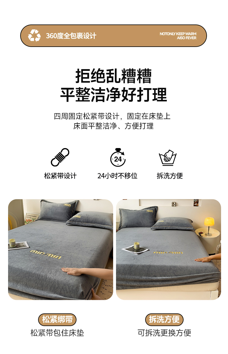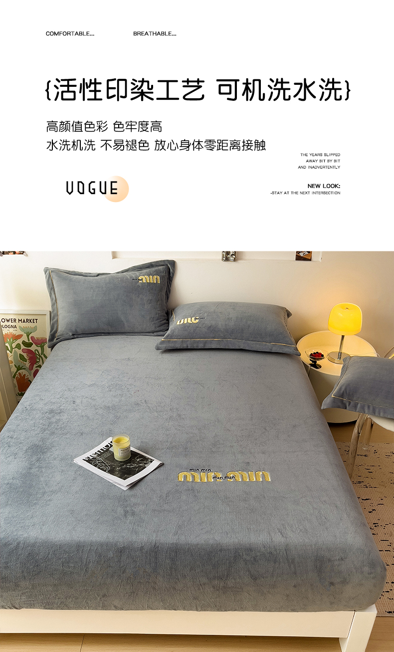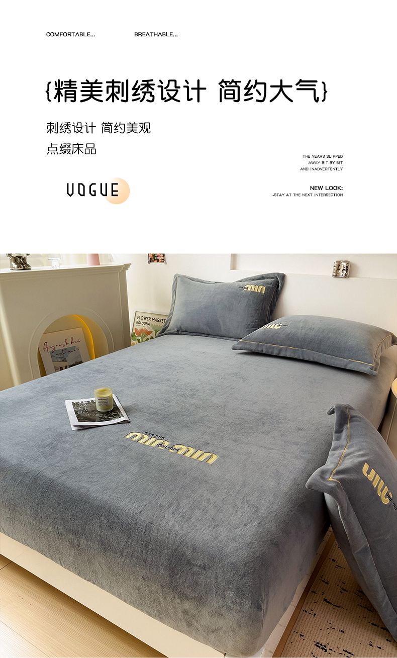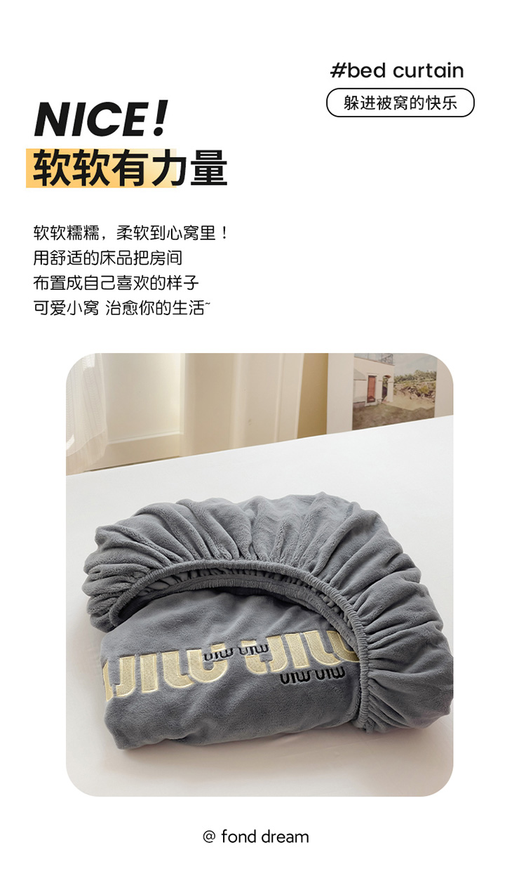 • 91家纺网 家纺一手货源 找家纺 言熙居 2024新款牛奶绒刺绣纯色360度全包床笠三件套 喵喵-灰