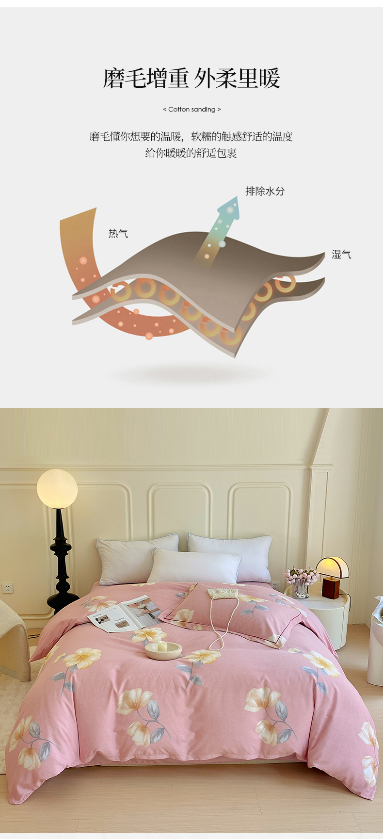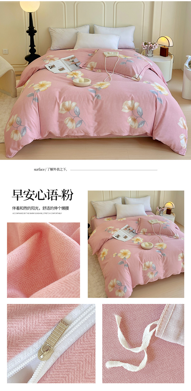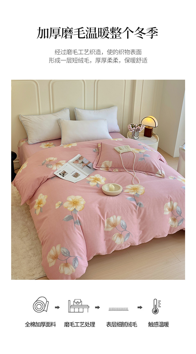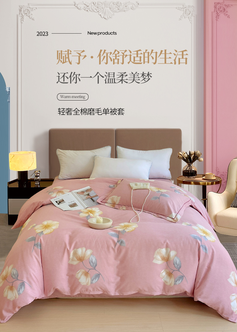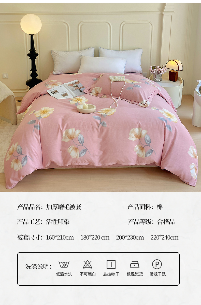 商品名称:梧桐树 2025新款加厚磨毛单被套 早安心语 粉