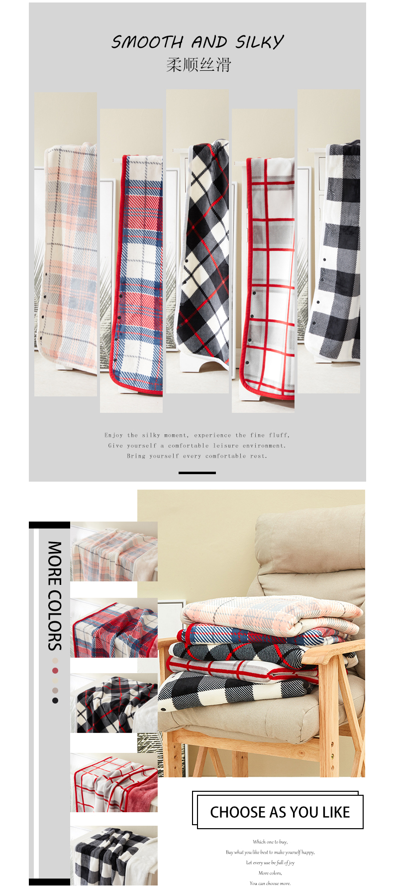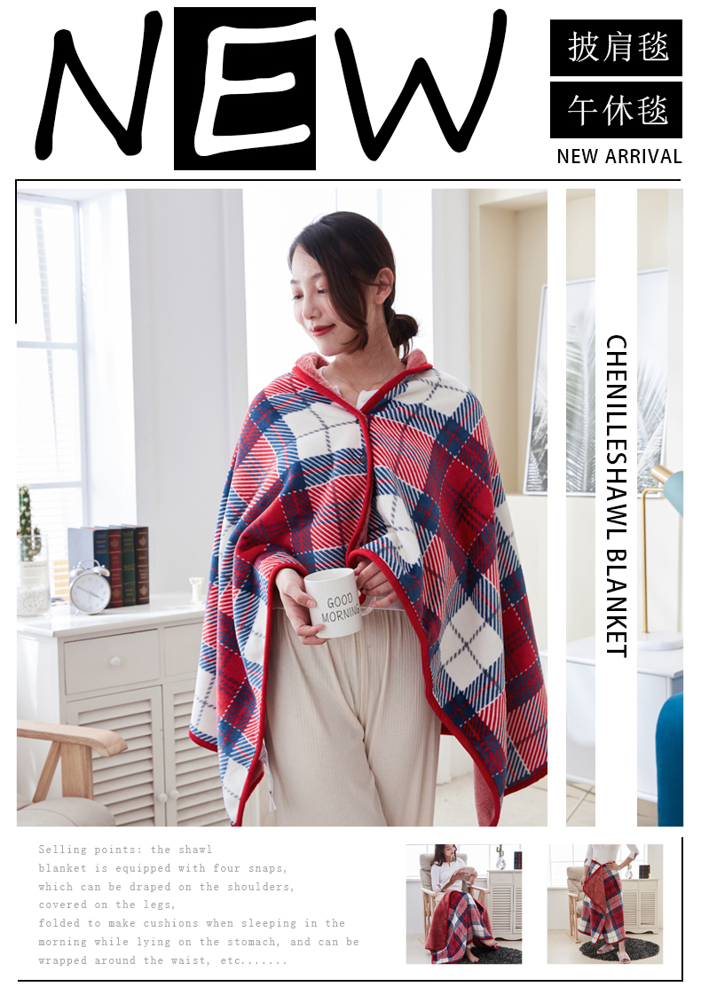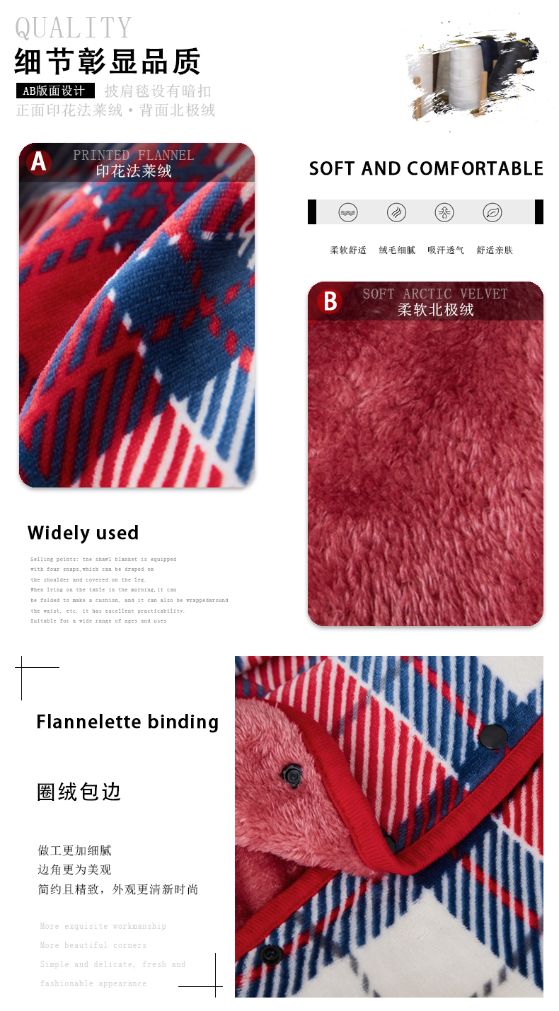商品名称:悦织湾家纺 2025新款纯色印花格子法莱绒北极绒披肩毯 牛奶绒羊羔绒双层复合休闲毯跨境专供外贸出口热销款 红白细格