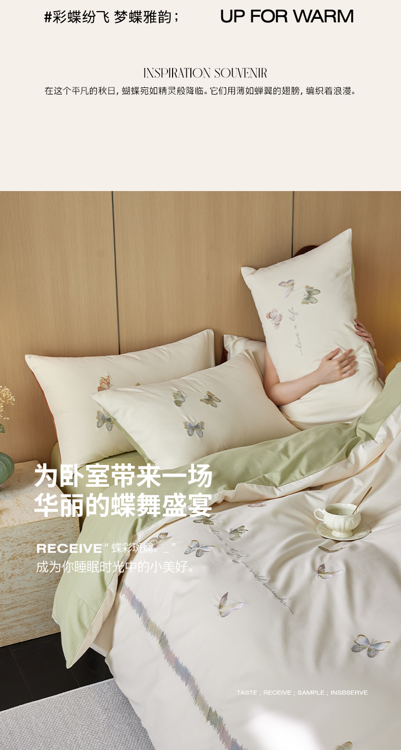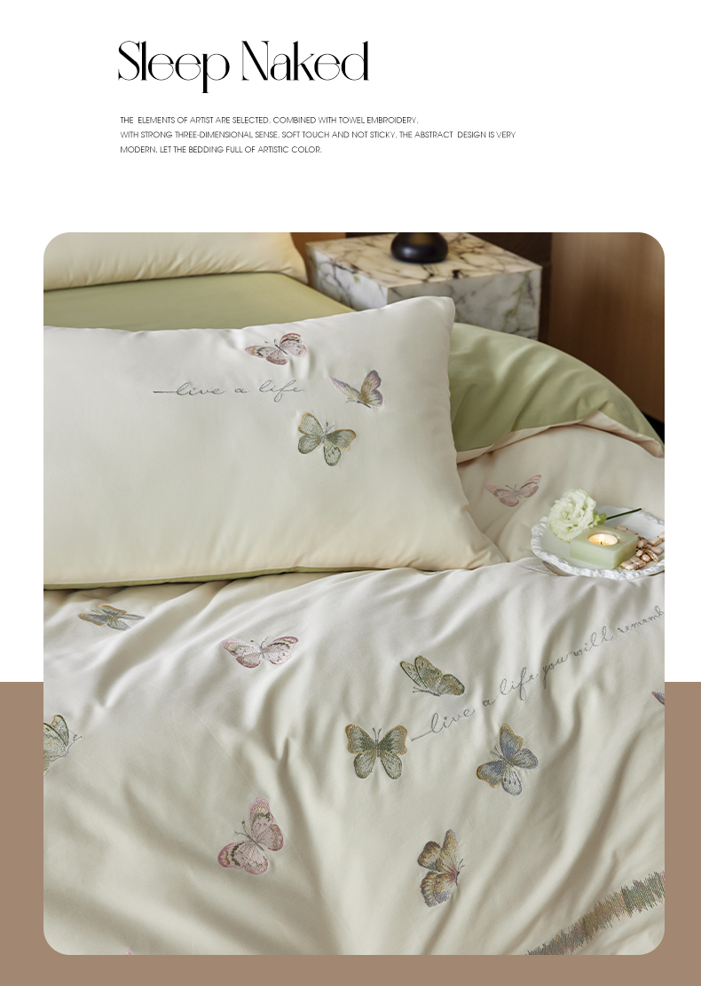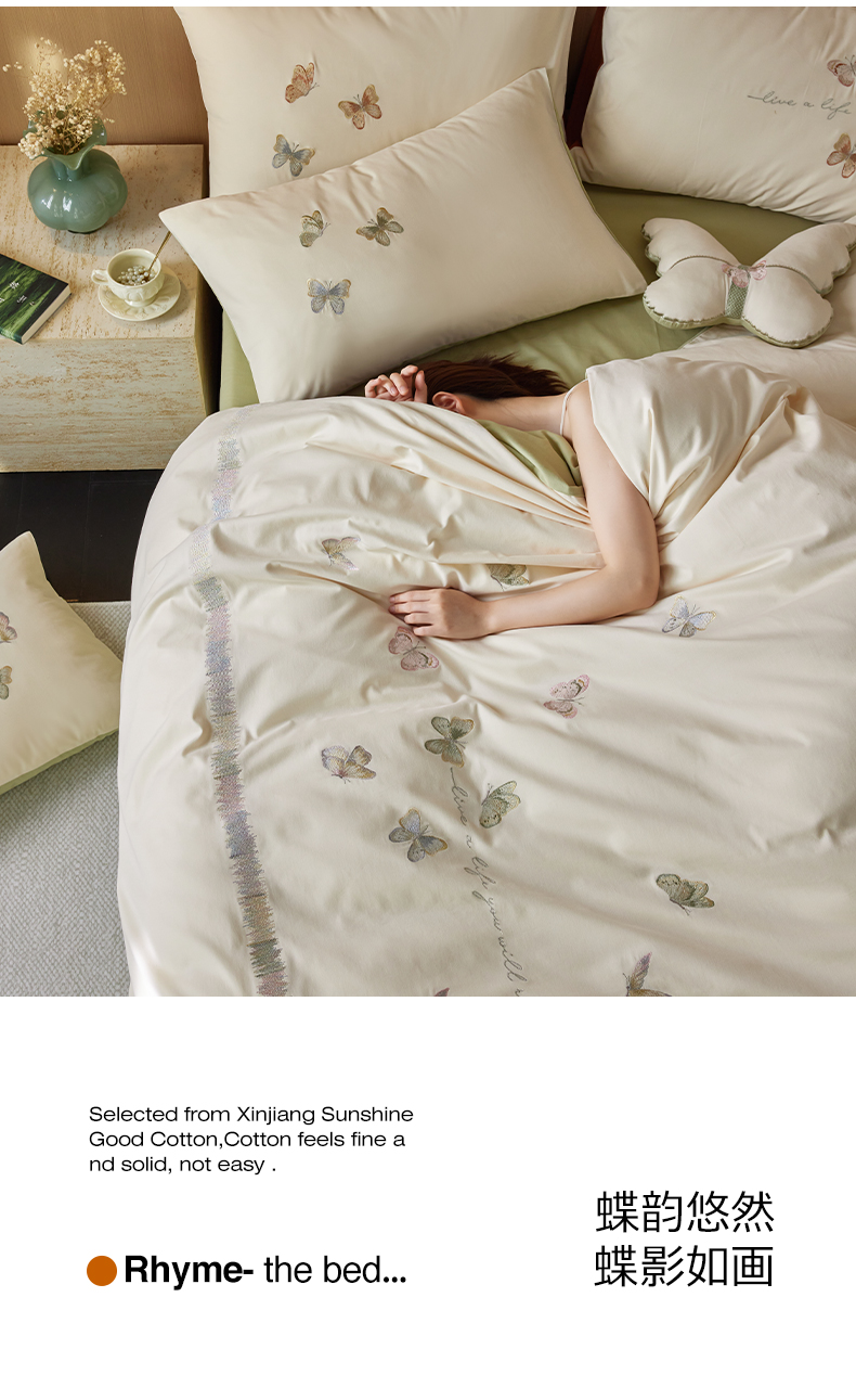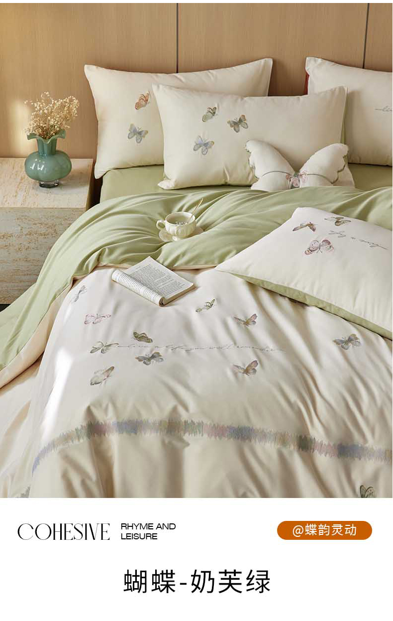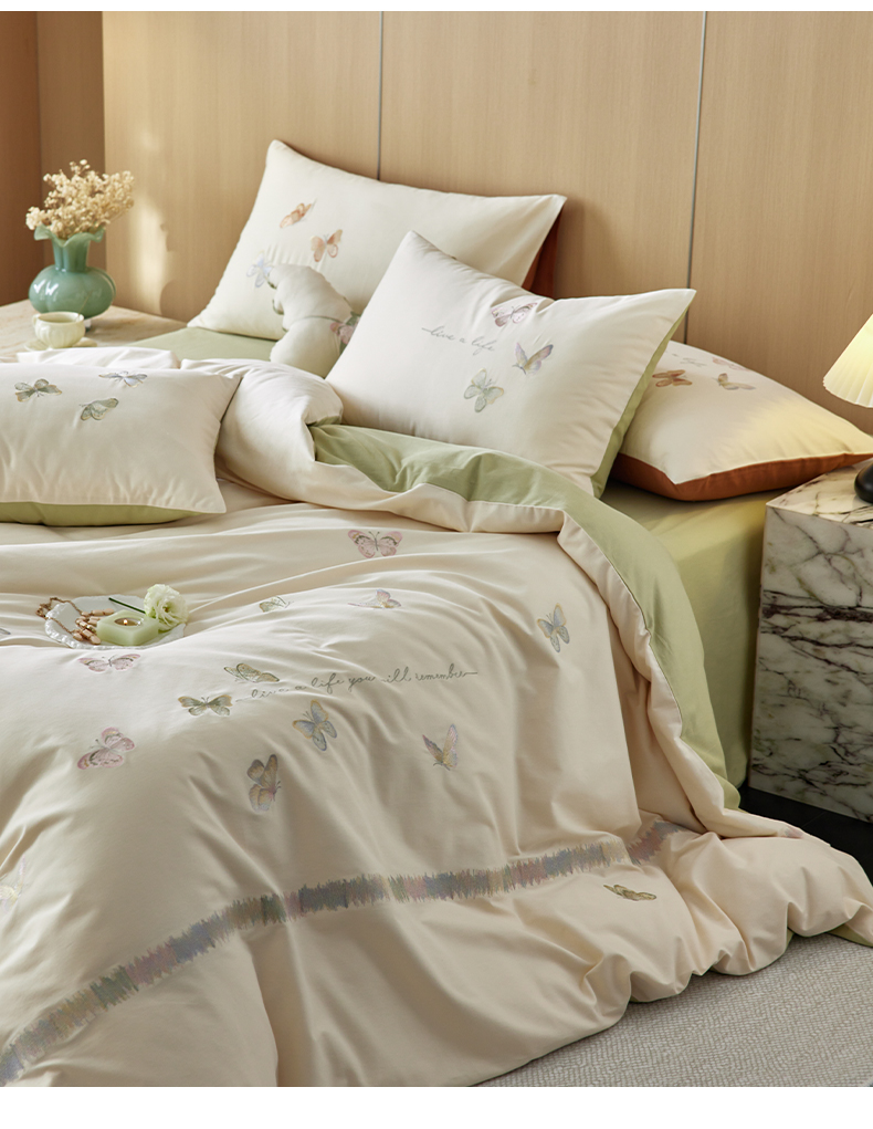 当前位置: 91家纺网 > 商品网购 > 床品套件 > 四件套 > 全棉普通四件套 > 风向标家纺 2024新款60s全棉磨毛蝴蝶绣花四件套 蝴蝶-奶芙绿