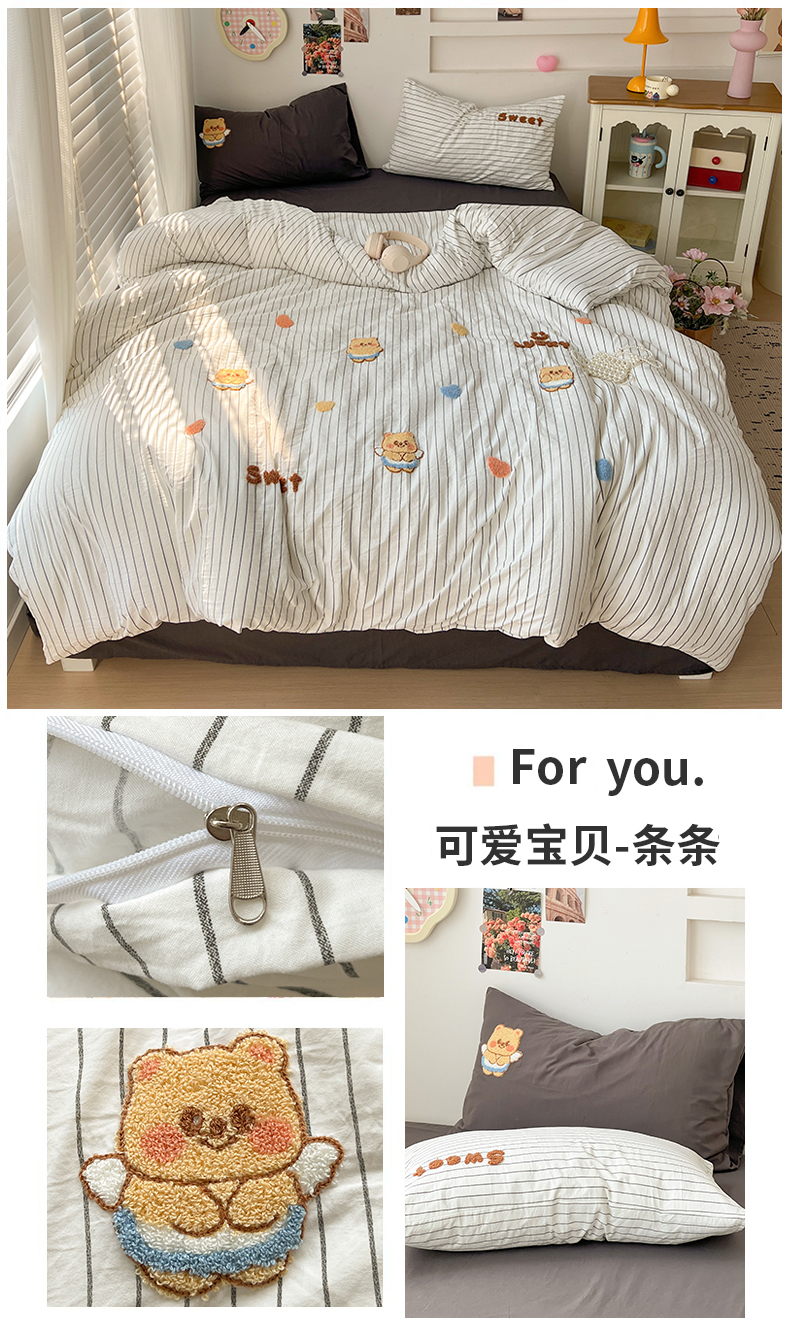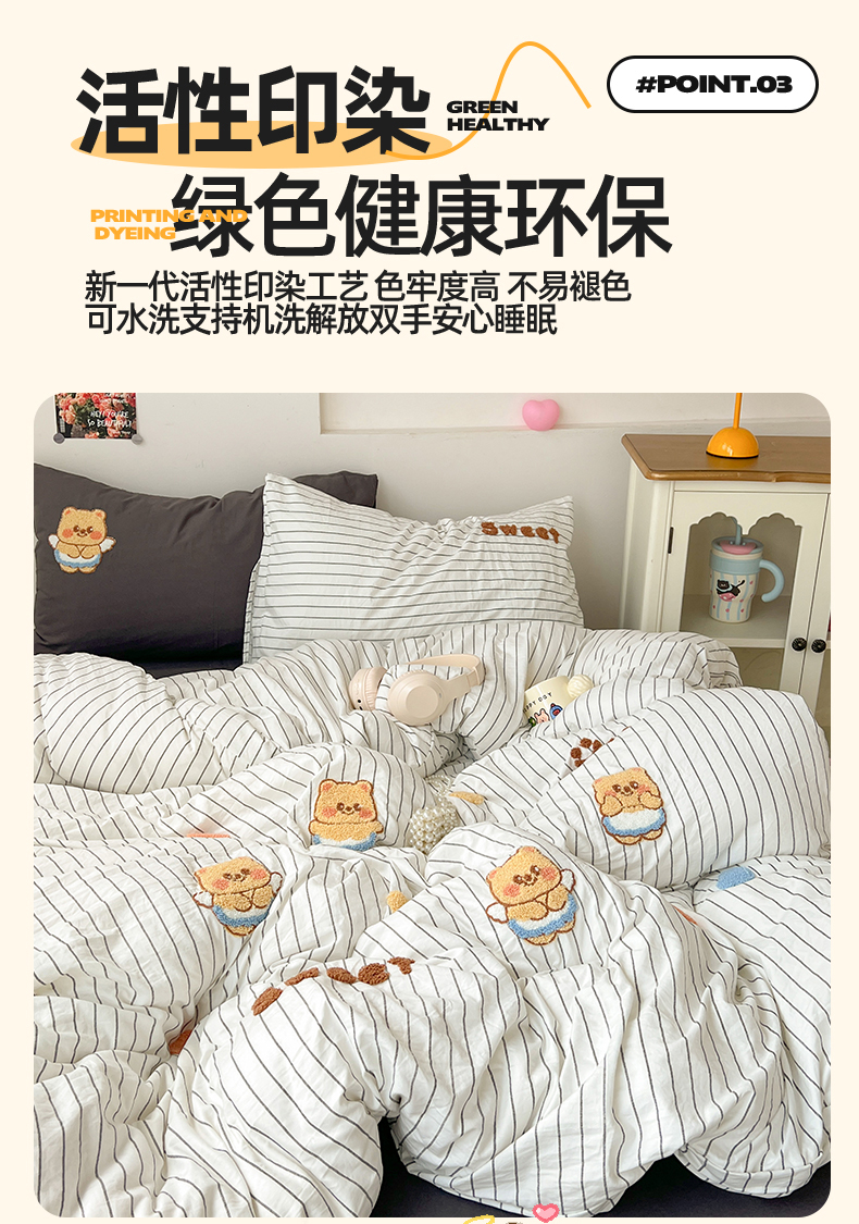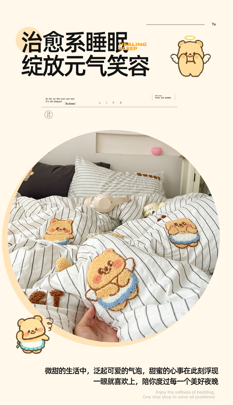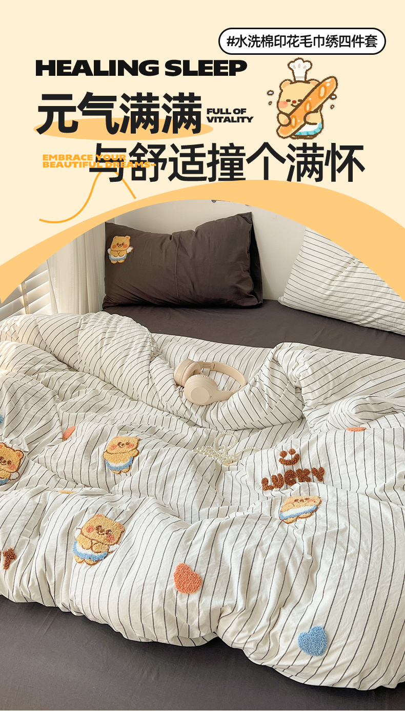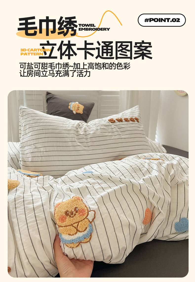 当前位置: 91家纺网 > 商品网购 > 床品套件 > 四件套 > 毛巾绣四件套 > 凯洛奇 2024新款加厚印花毛巾绣四件套 可爱宝贝-条条