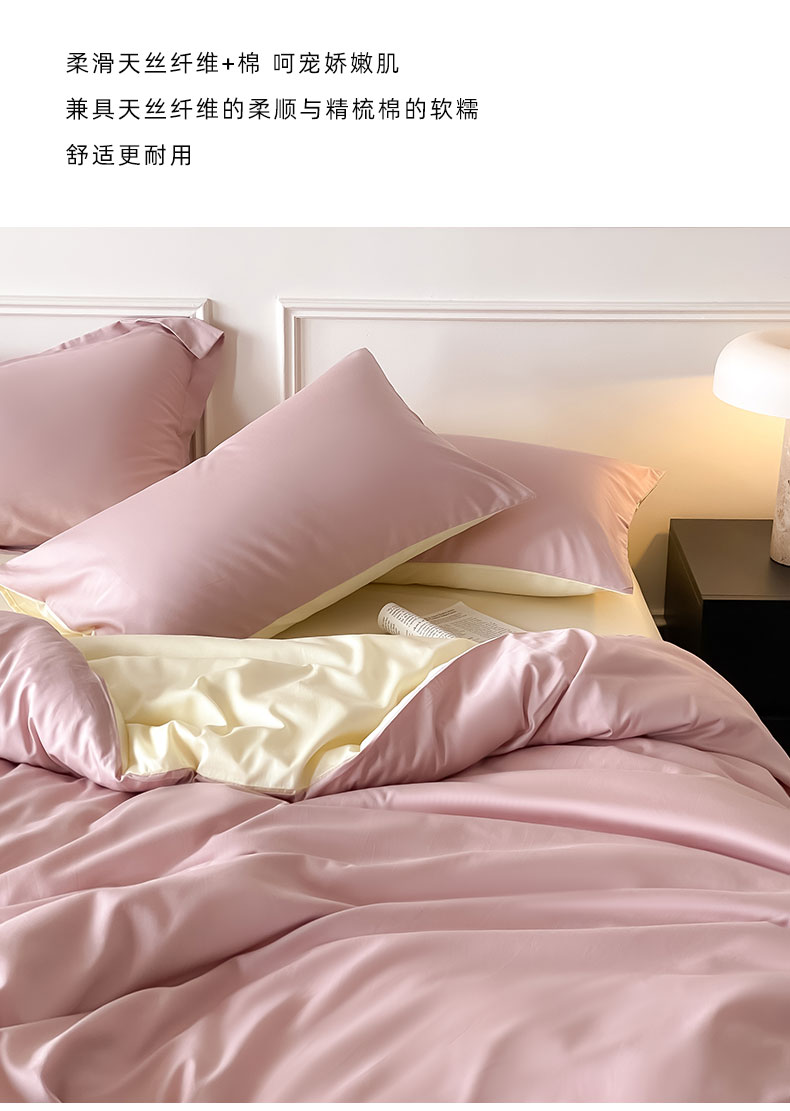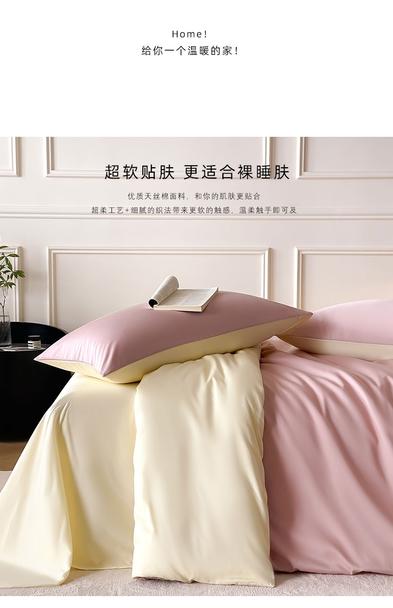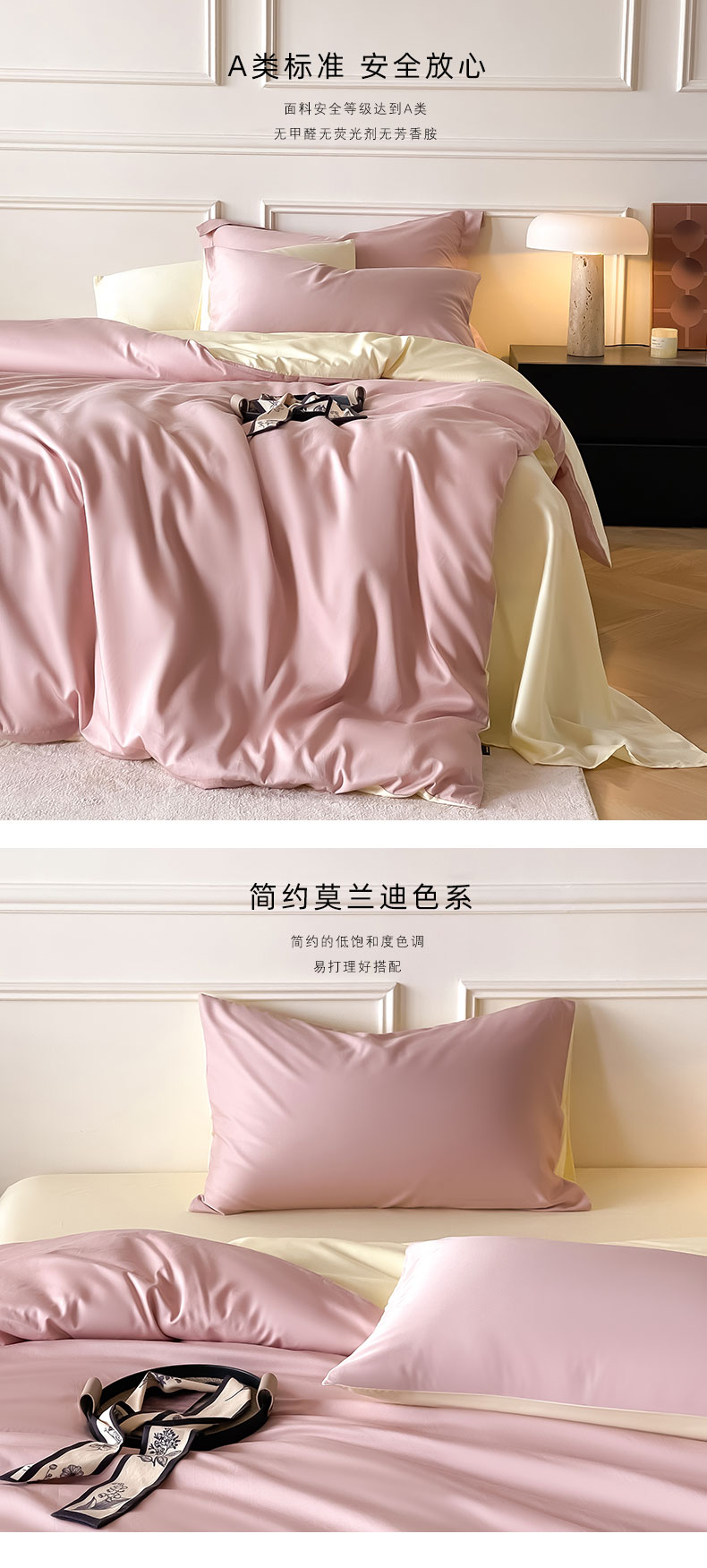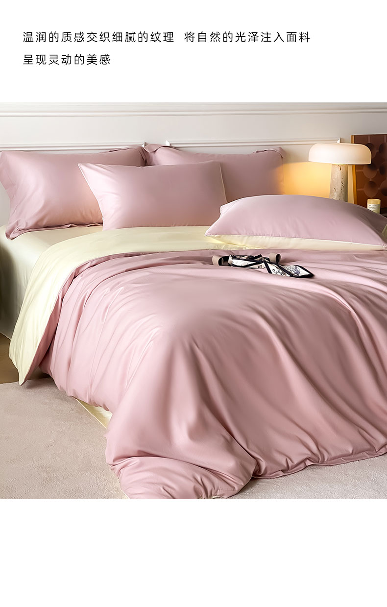 Mr.pig猪先生水洗棉 2024新款天丝棉纯色四件套 银粉+新月黄