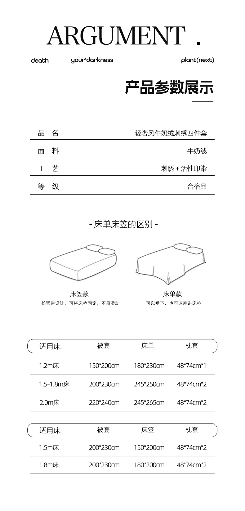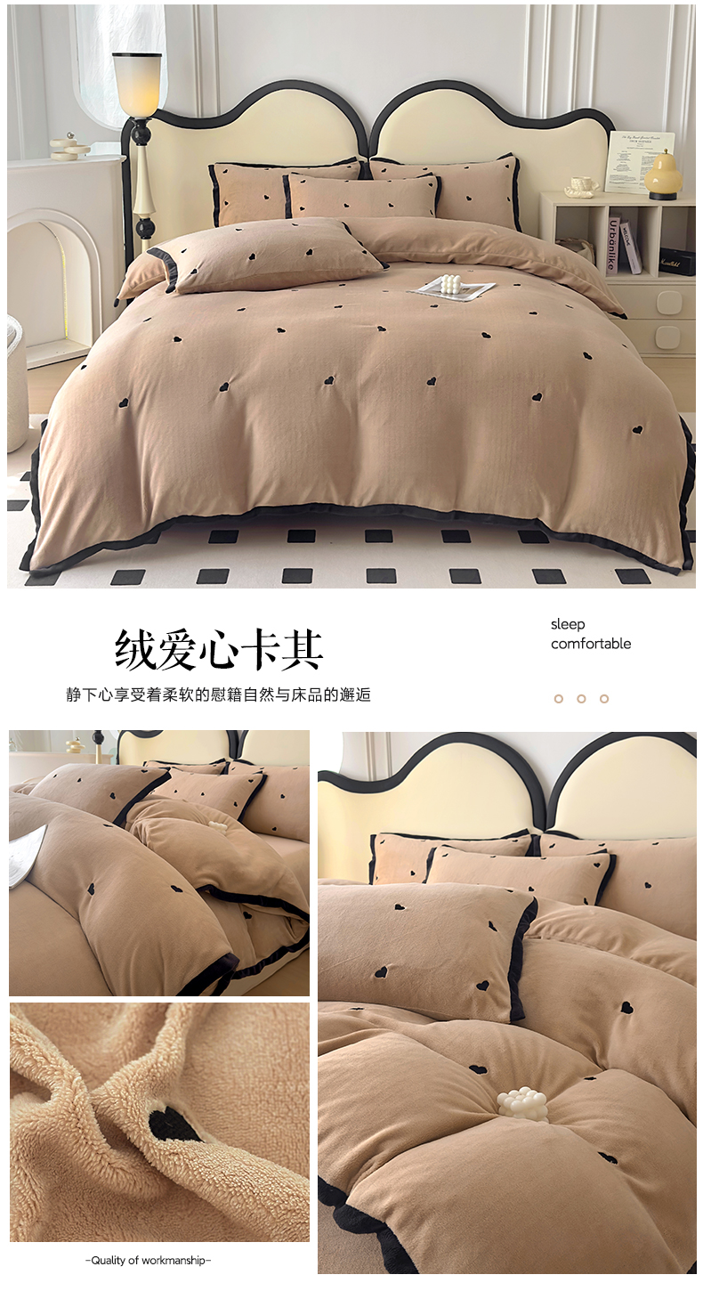 商品名称:美梦家纺 2024新款秋冬高克重牛奶绒绣花四件套系列-绒蝴蝶结 绒爱心-卡其