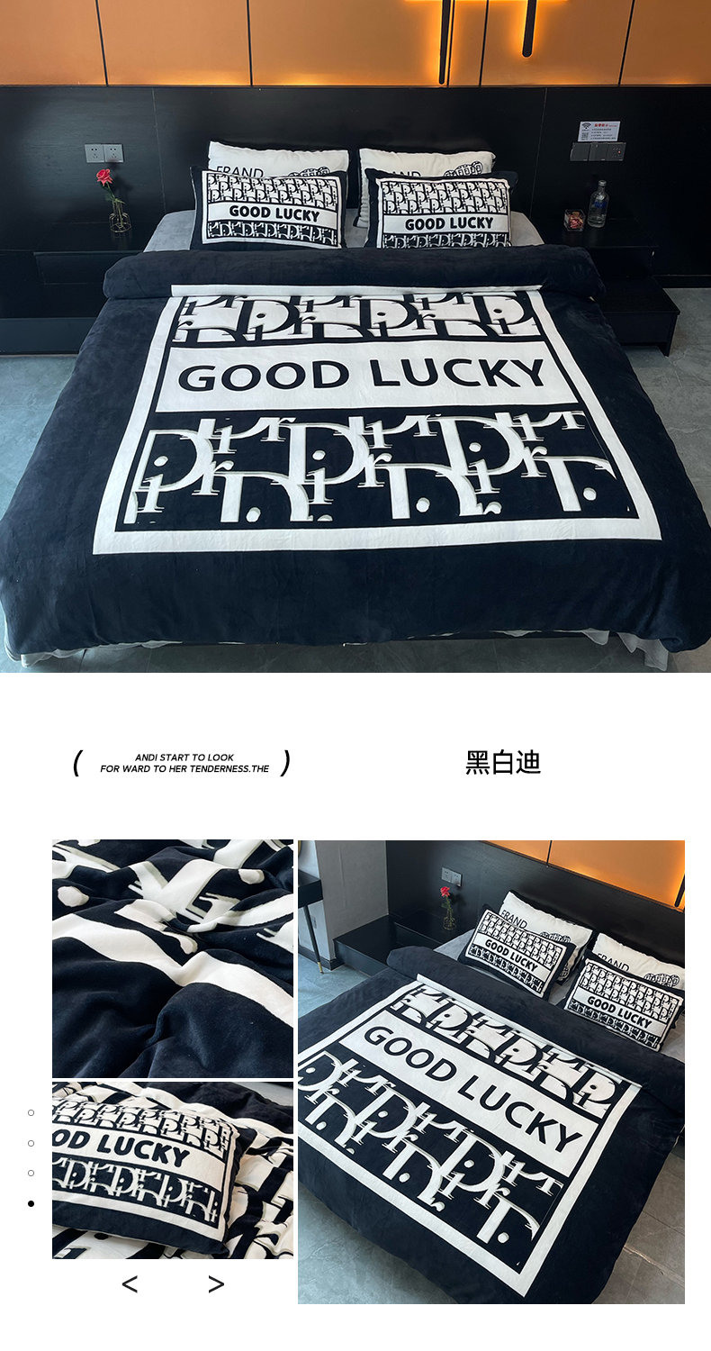 当前位置: 91家纺网 > 商品网购 > 床品套件 > 四件套 > 牛奶绒四件套 > 花沐家居 2024牛奶绒印花四件套黑白迪