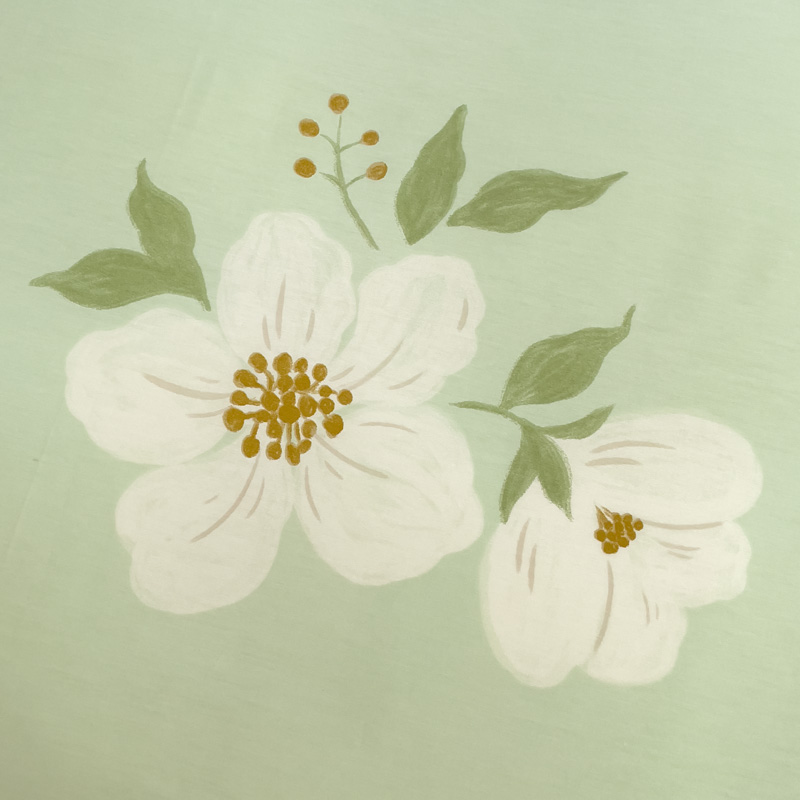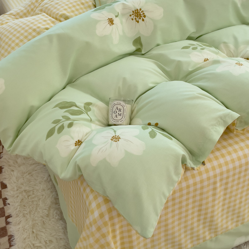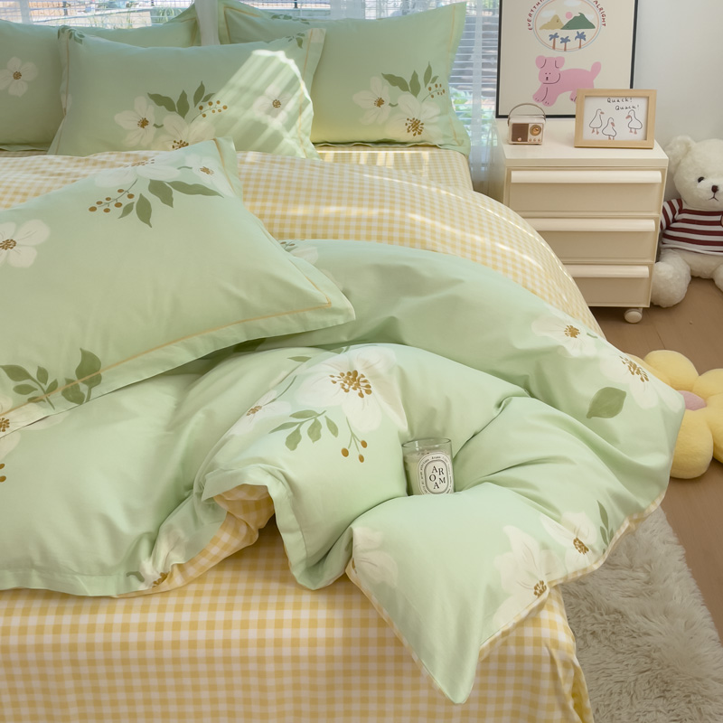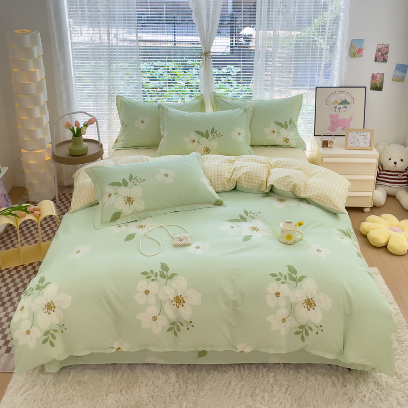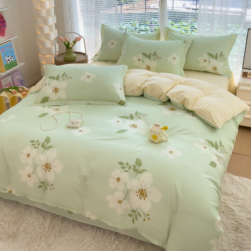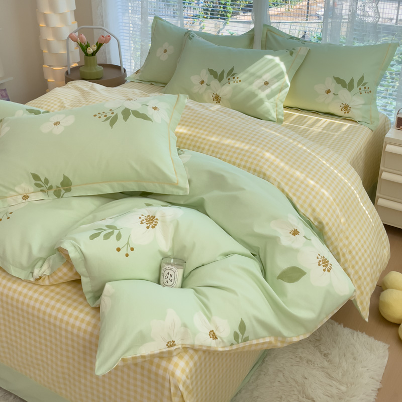 铭博家纺 新款直播爆款网红全棉四件套13070印花吊边一字绣纯棉四件套工艺款 春光绿意