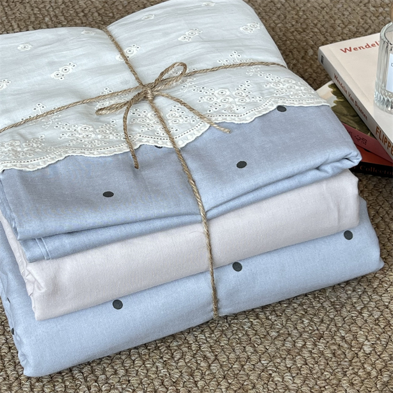 2024新款全棉印花双层纱四件套--蕾丝花边款 多肉蓝莓