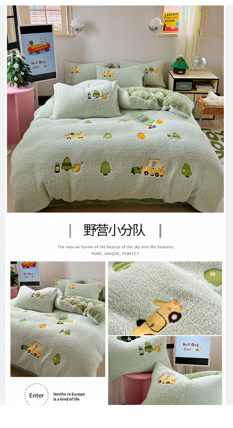 商品名称:眠屿家纺 2025新款羊羔绒毛巾绣四件套 野营小分队