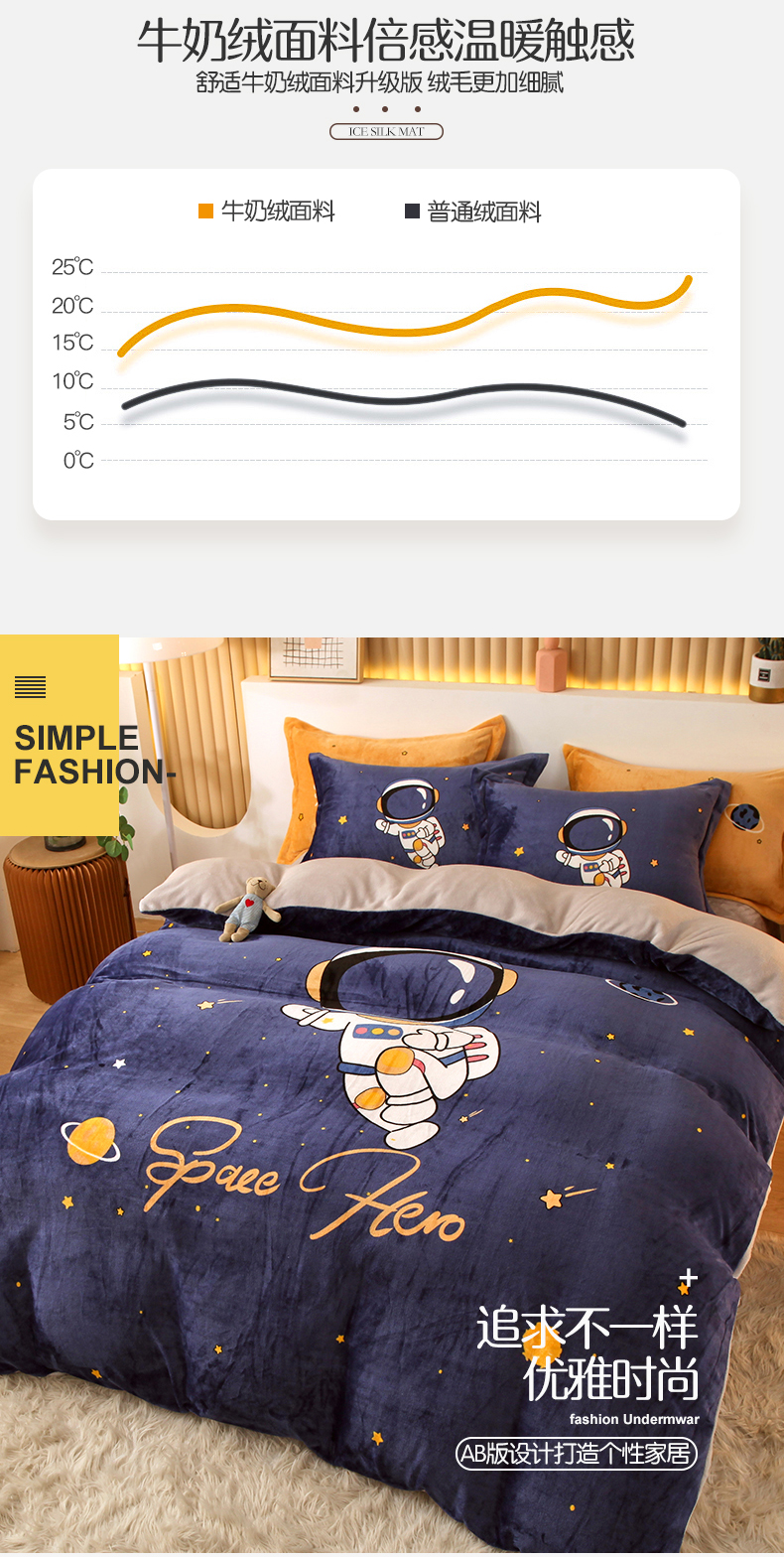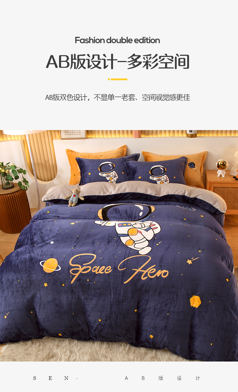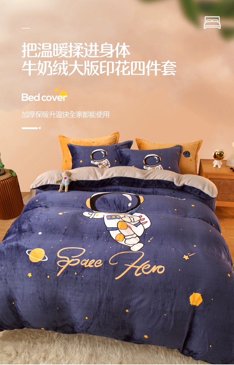 凡客 2024新款牛奶绒大版印花四件套 未来之星
