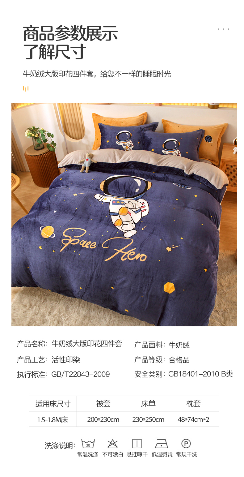 商品名称:凡客 2024新款牛奶绒大版印花四件套 未来之星