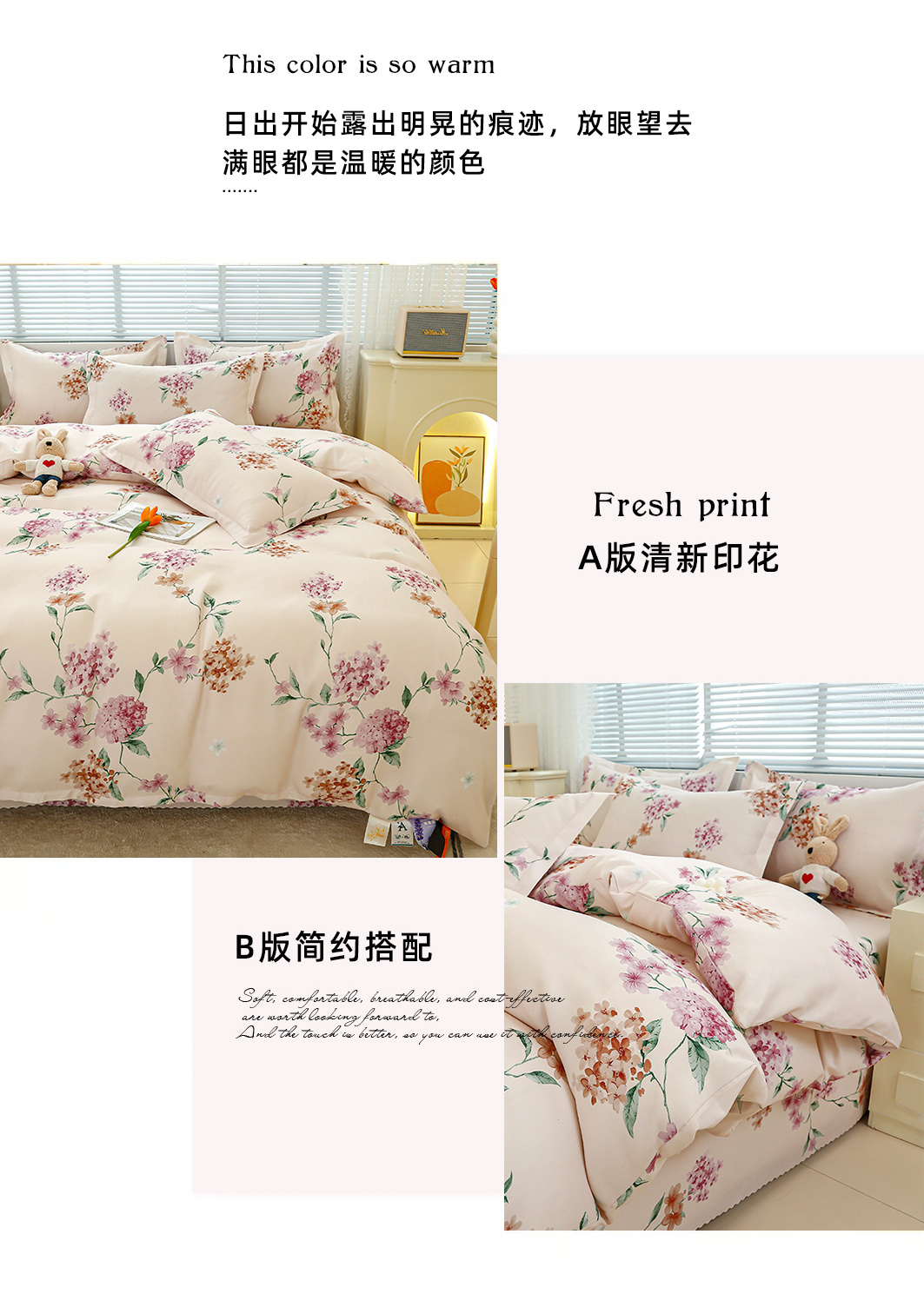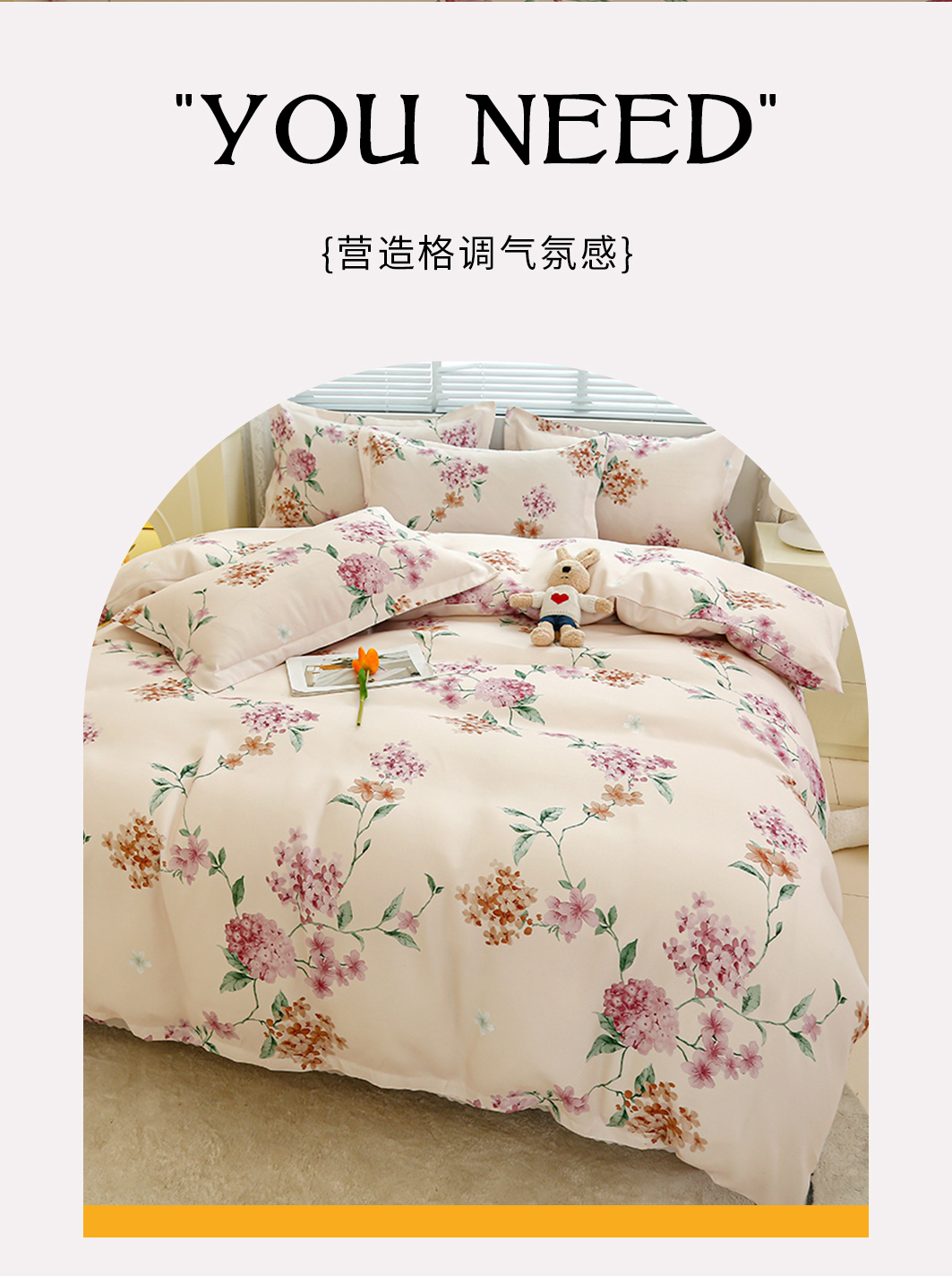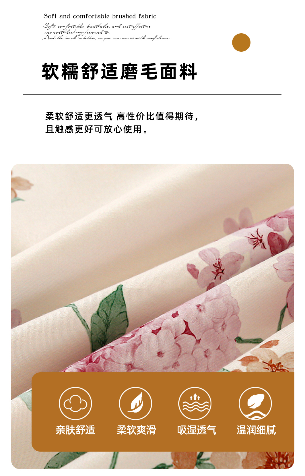 商品名称:友承 2025新款亲肤磨毛植物羊绒印花四件套 一念花开