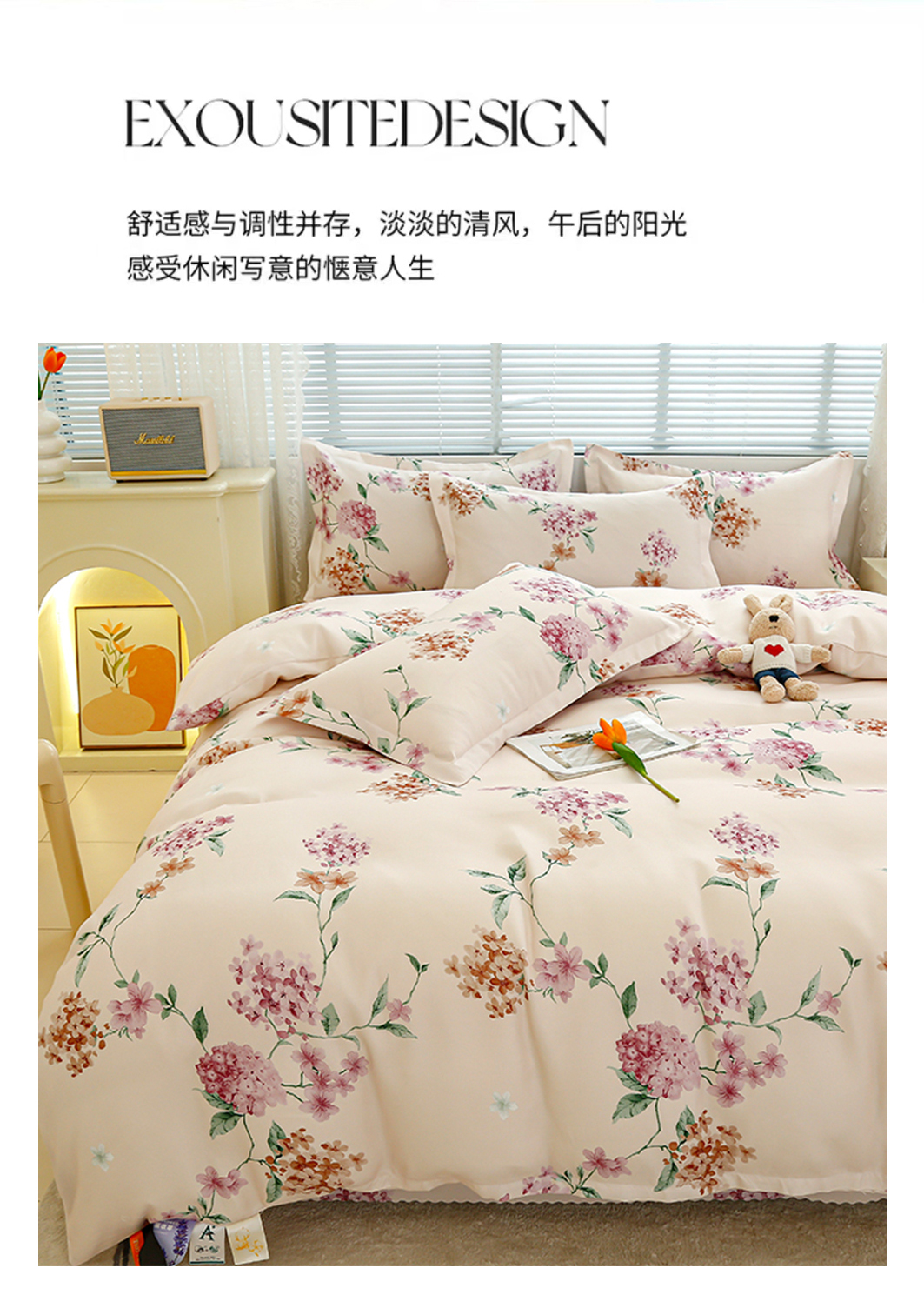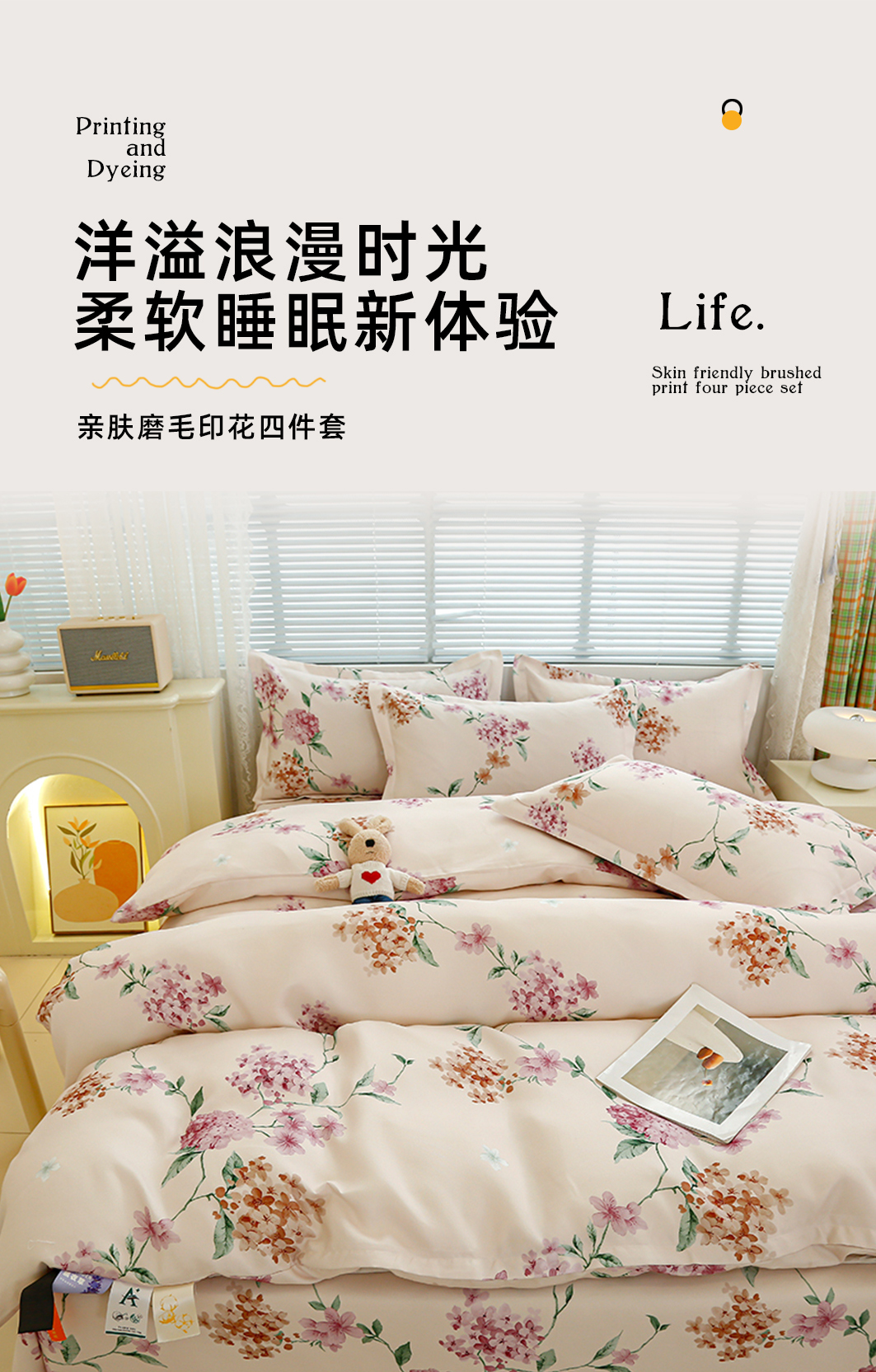 友承 2025新款亲肤磨毛植物羊绒印花四件套 一念花开