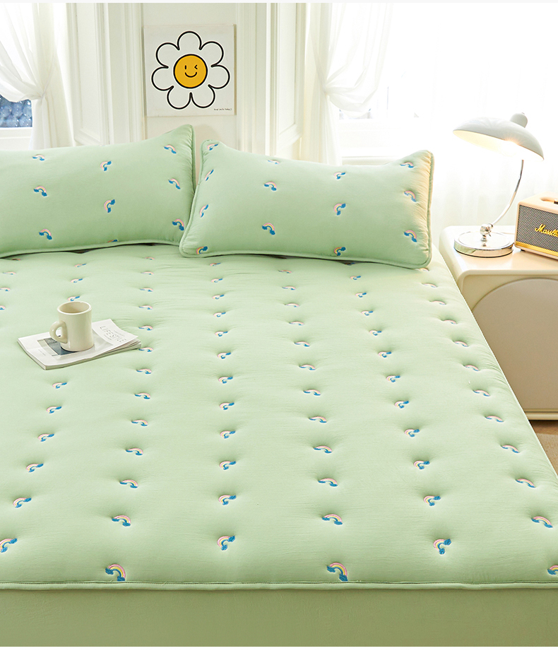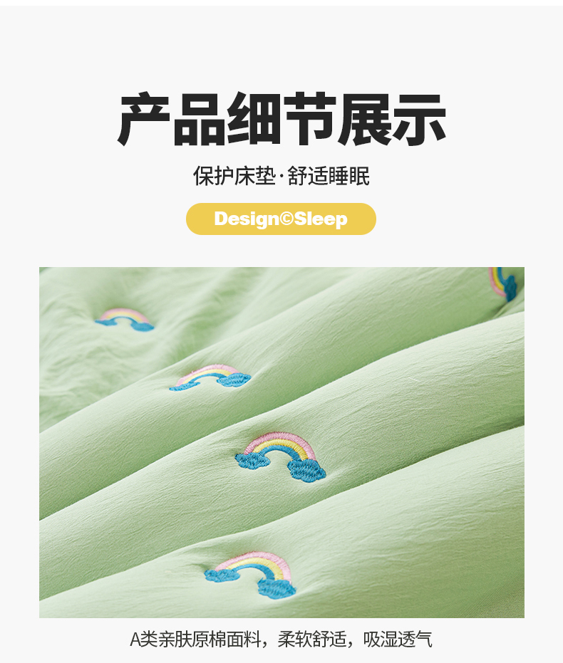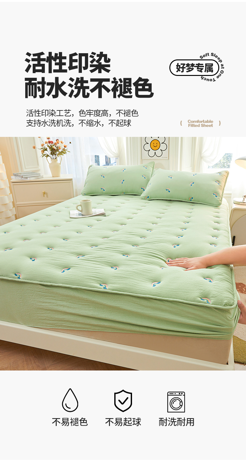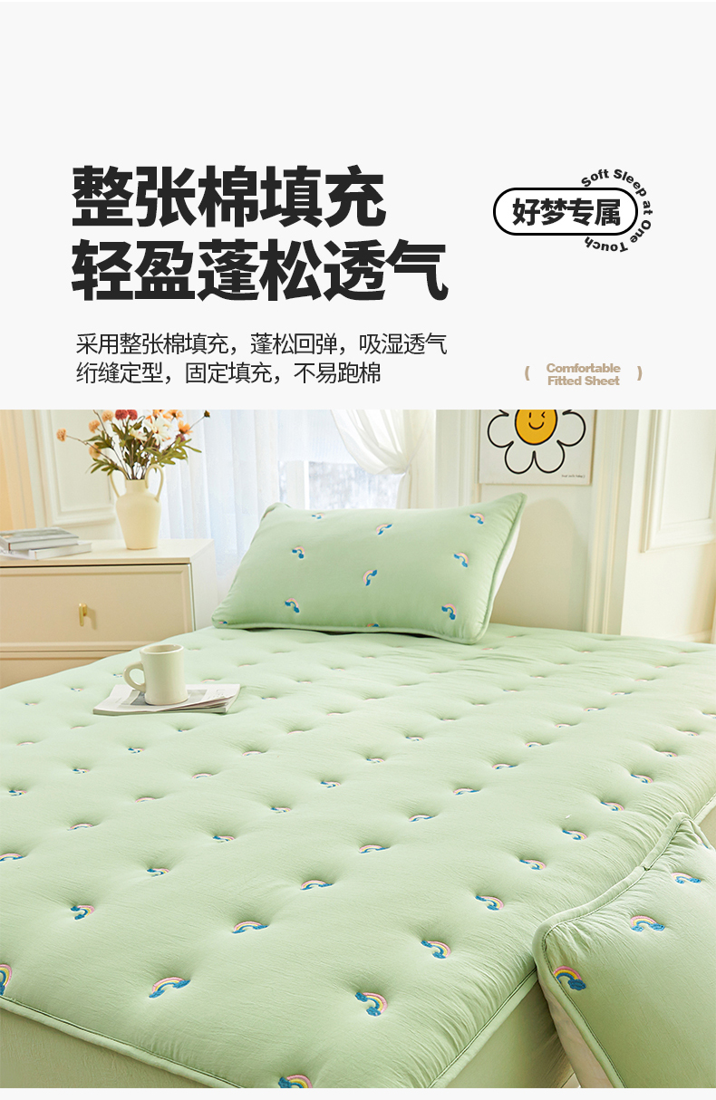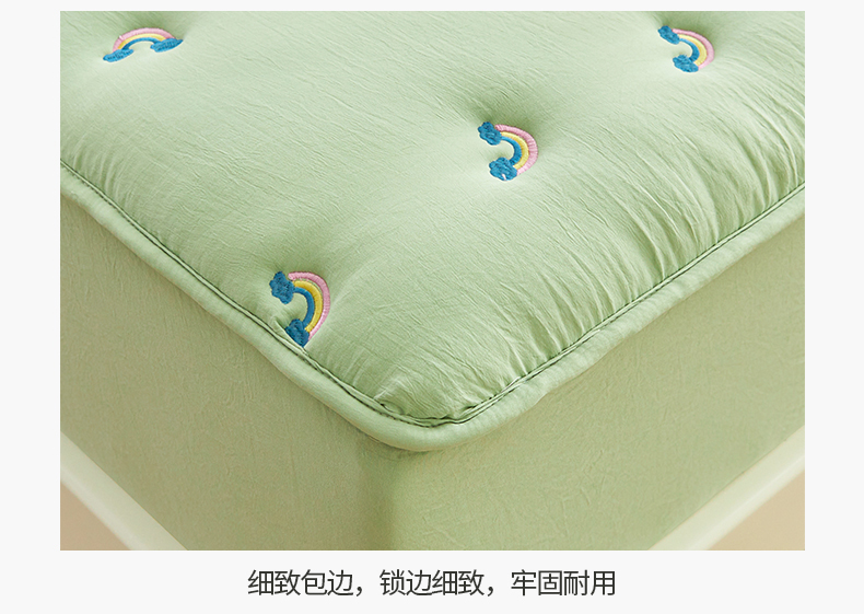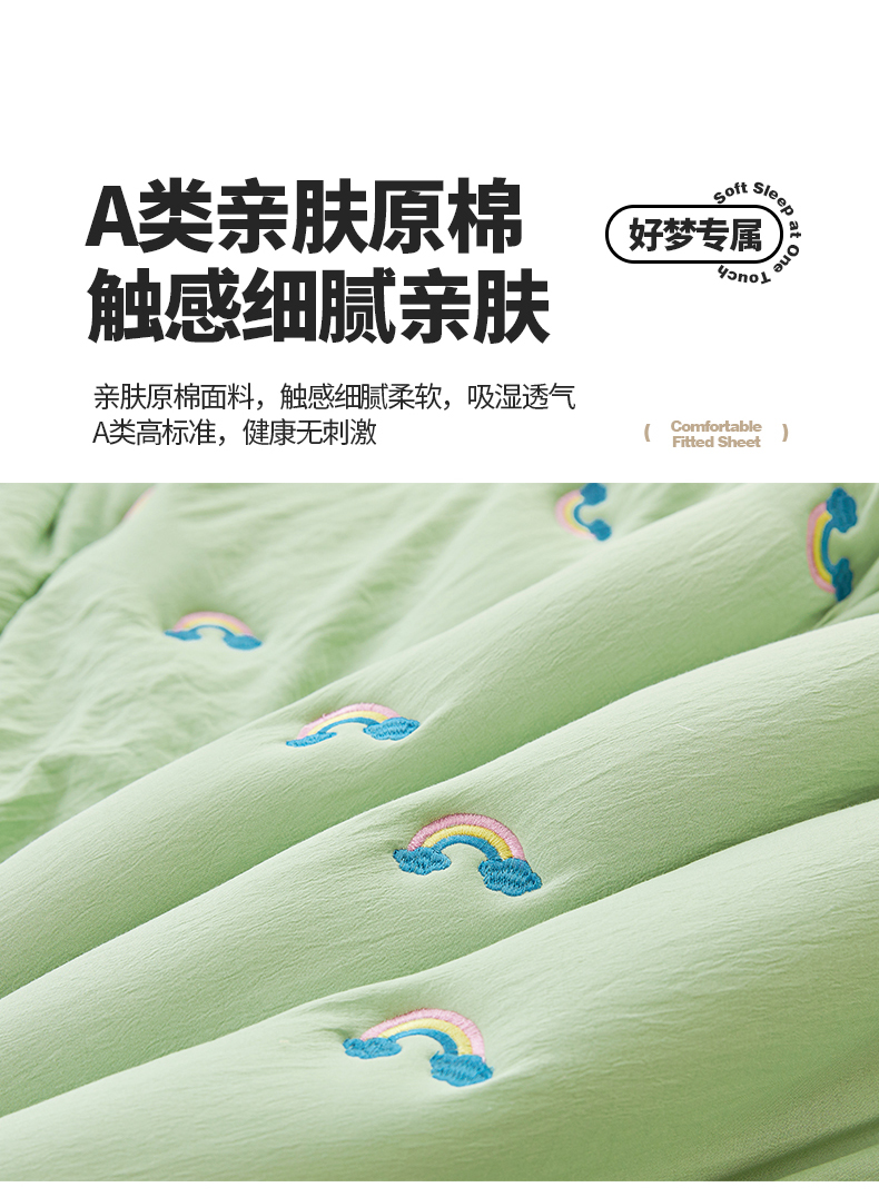 商品名称:迪梦思家纺 2024新款A类亲肤原棉刺绣床笠床垫保护套--彩虹系列 彩虹-豆绿