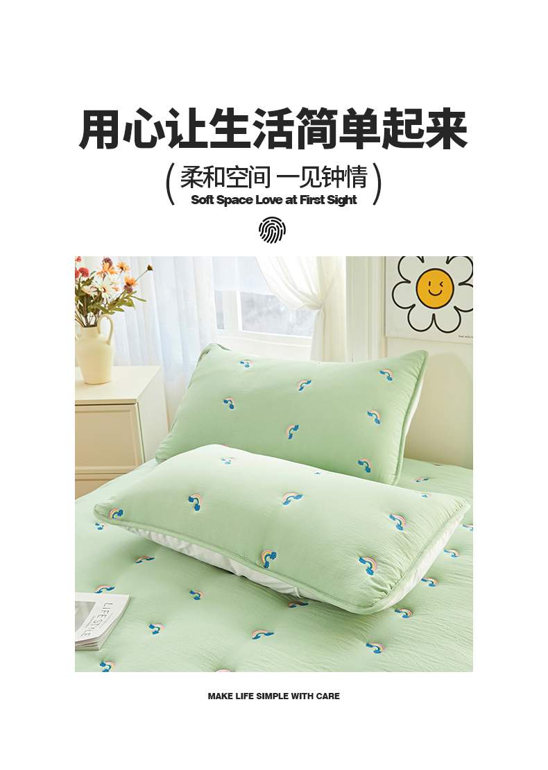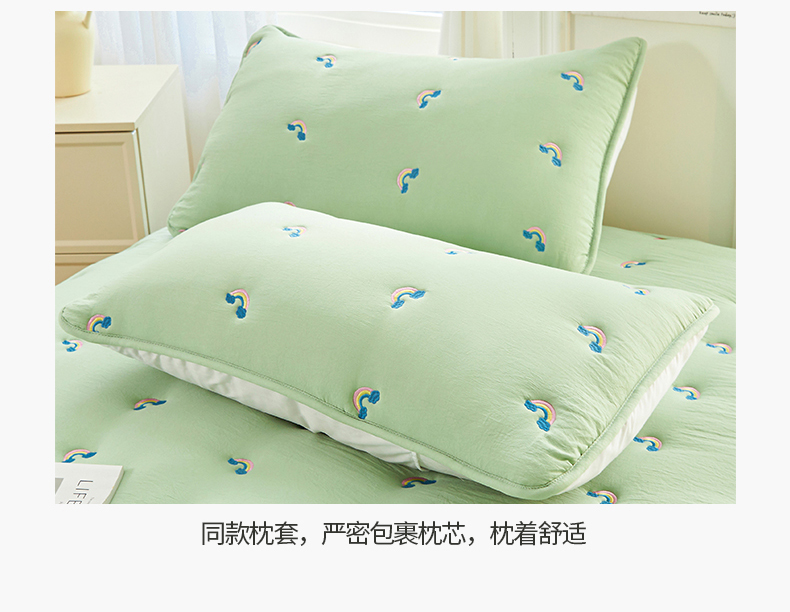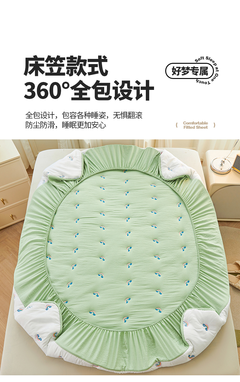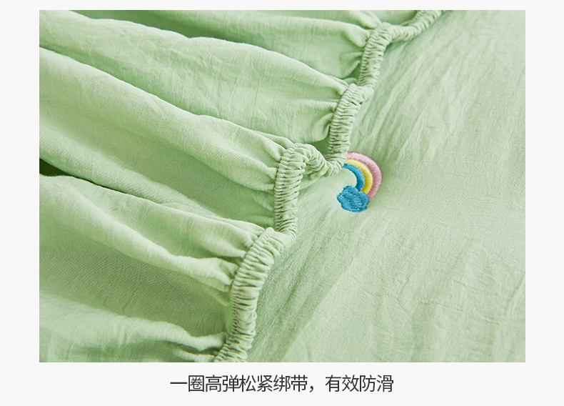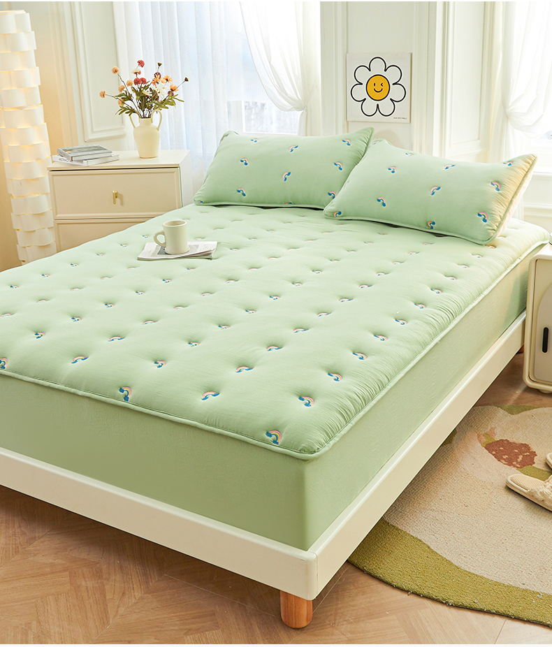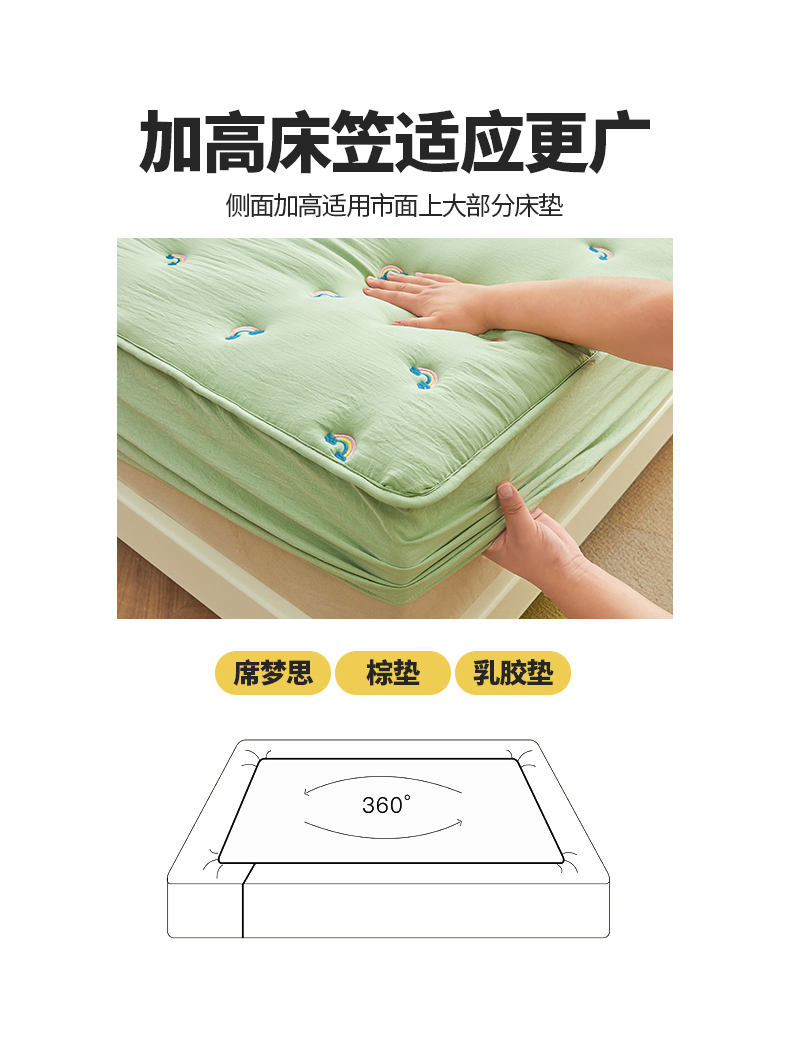 商品名称:迪梦思家纺 2024新款A类亲肤原棉刺绣床笠床垫保护套--彩虹系列 彩虹-豆绿