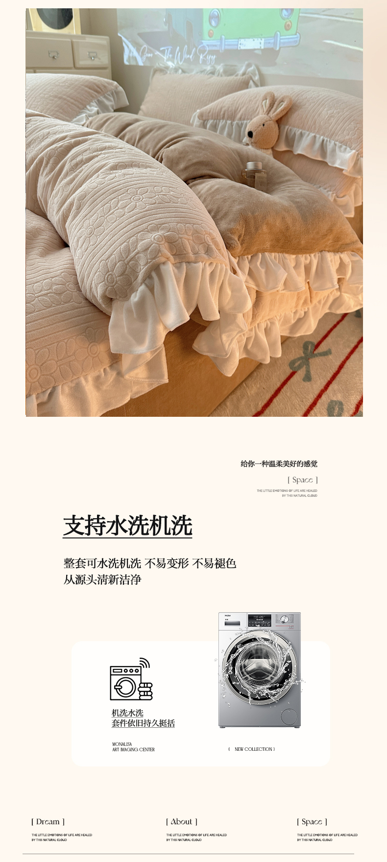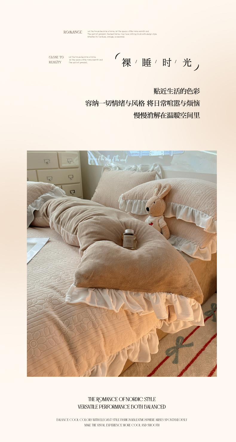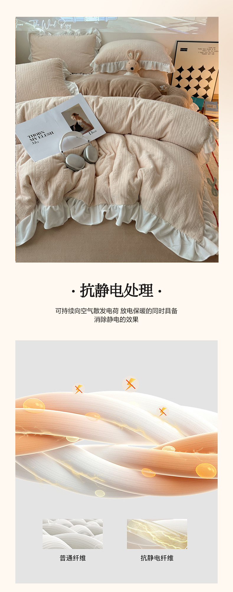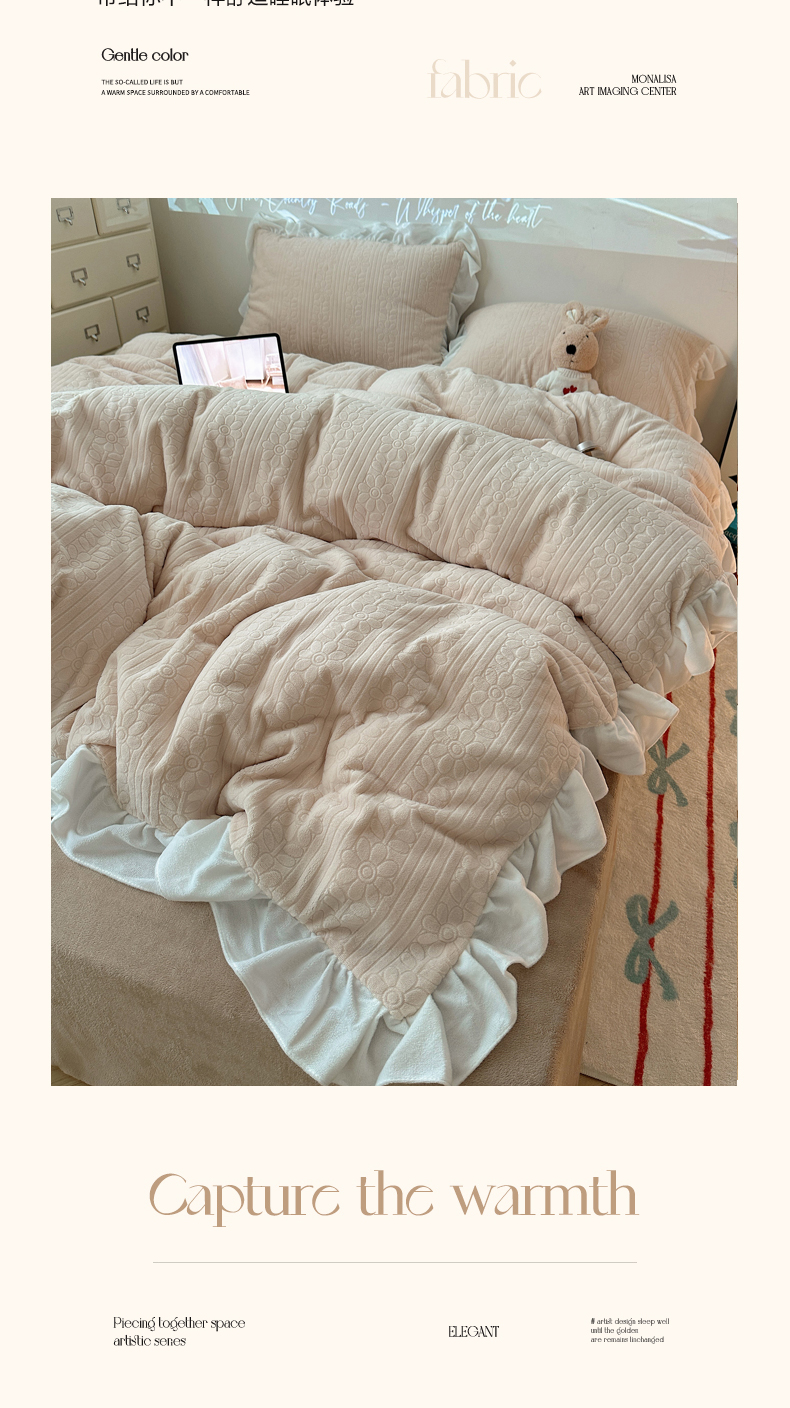 商品名称:三朵家纺 2024新款3D立体浮雕花边保暖加厚四件套 暖暖花语