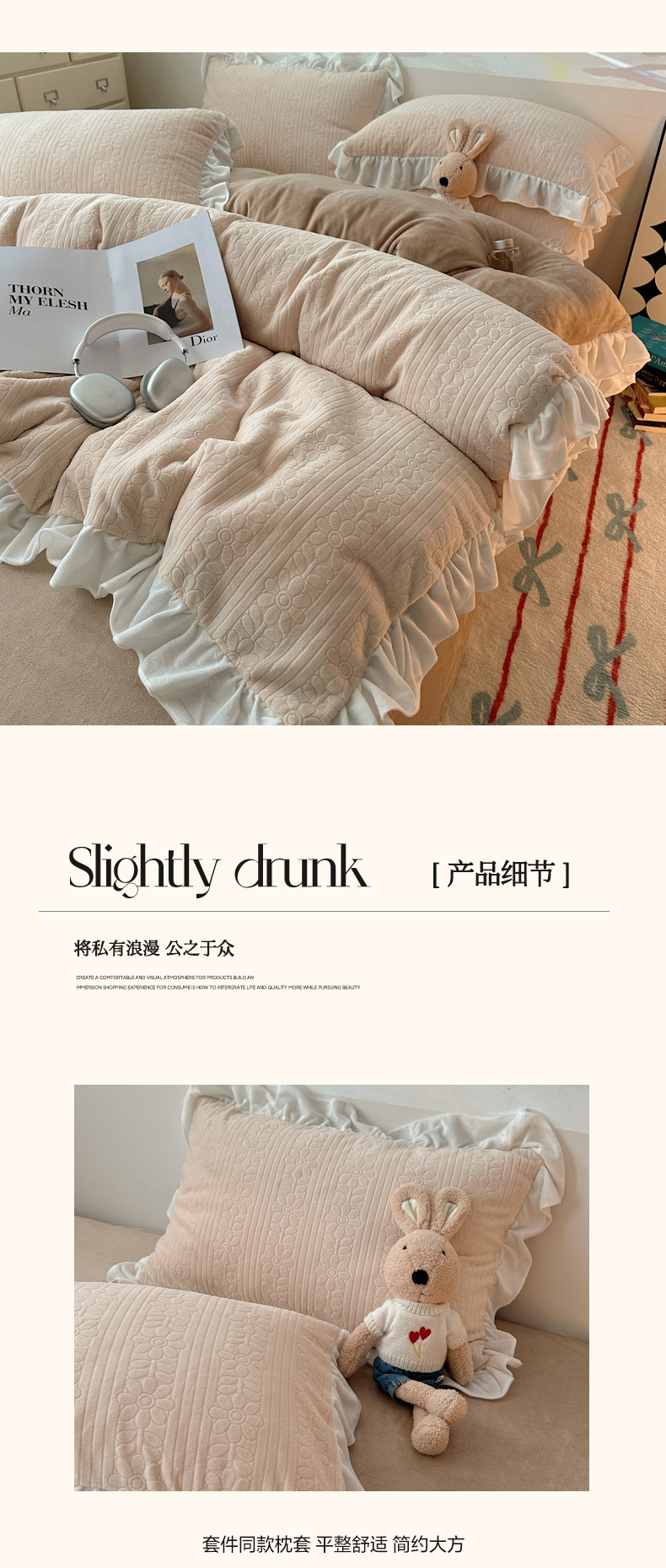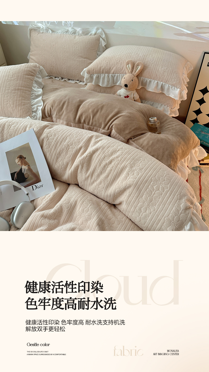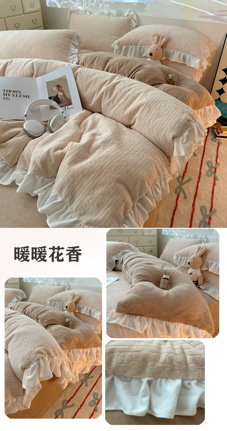 三朵家纺 2024新款3D立体浮雕花边保暖加厚四件套 暖暖花语