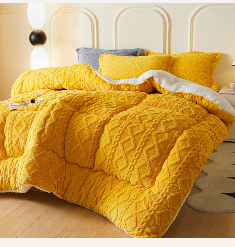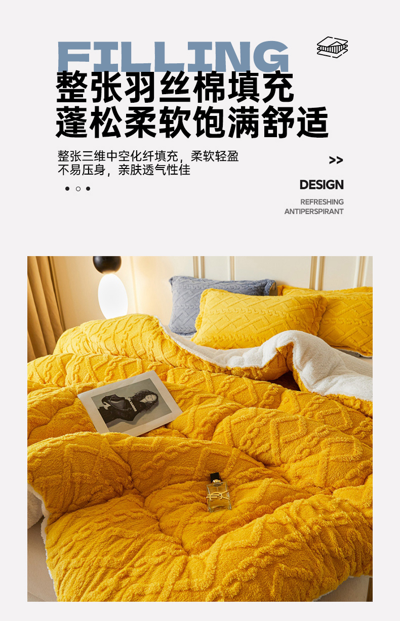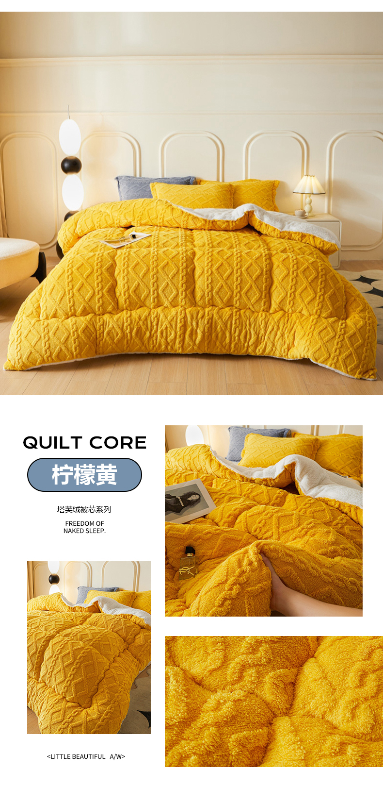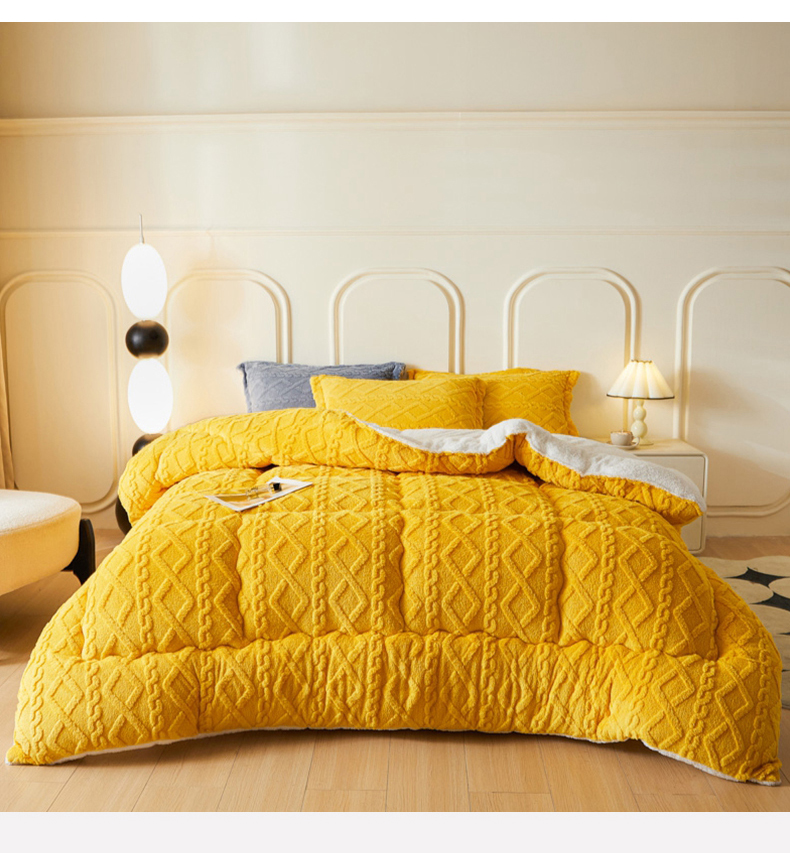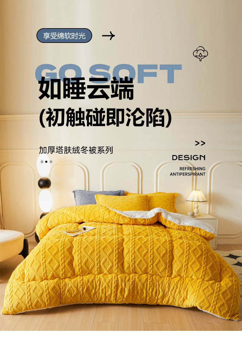 • 91家纺网 家纺一手货源 找家纺 吉祥家纺 2024新款纯色塔芙绒被芯系列 柠檬黄