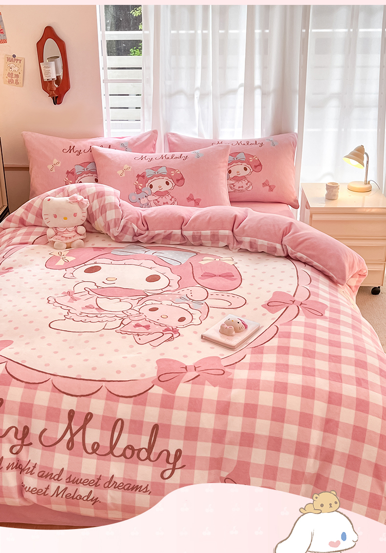 星座家纺 2025新款大版三丽鸥牛奶绒四件套 相框美乐蒂
