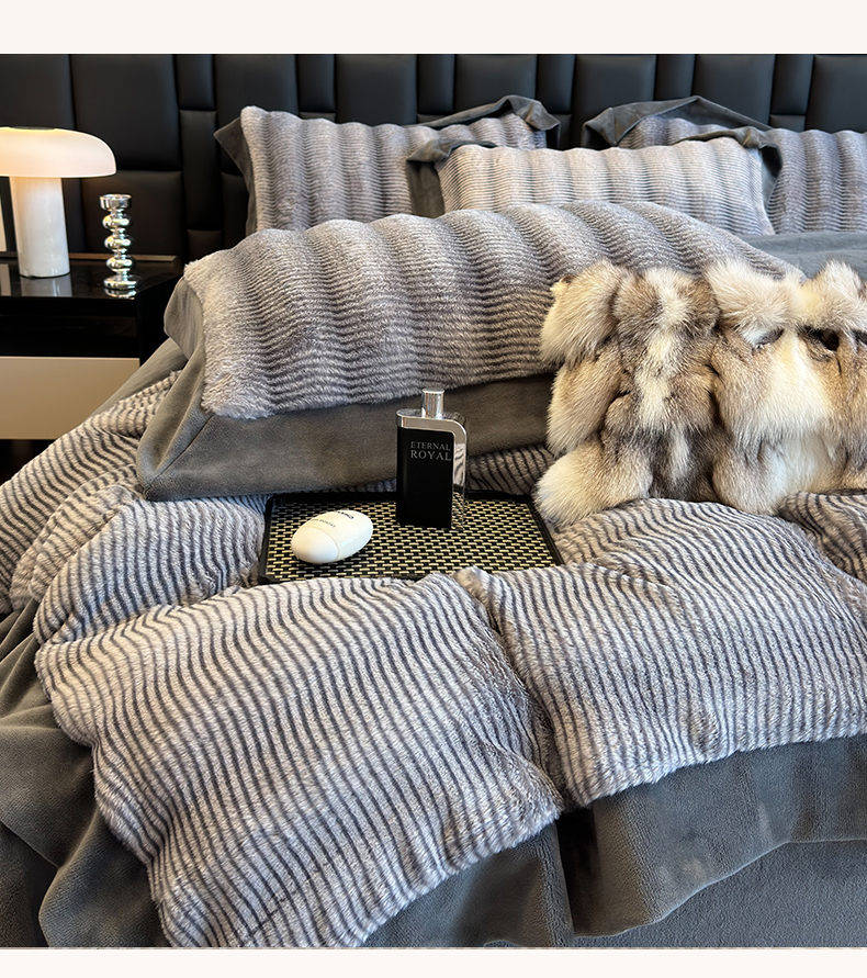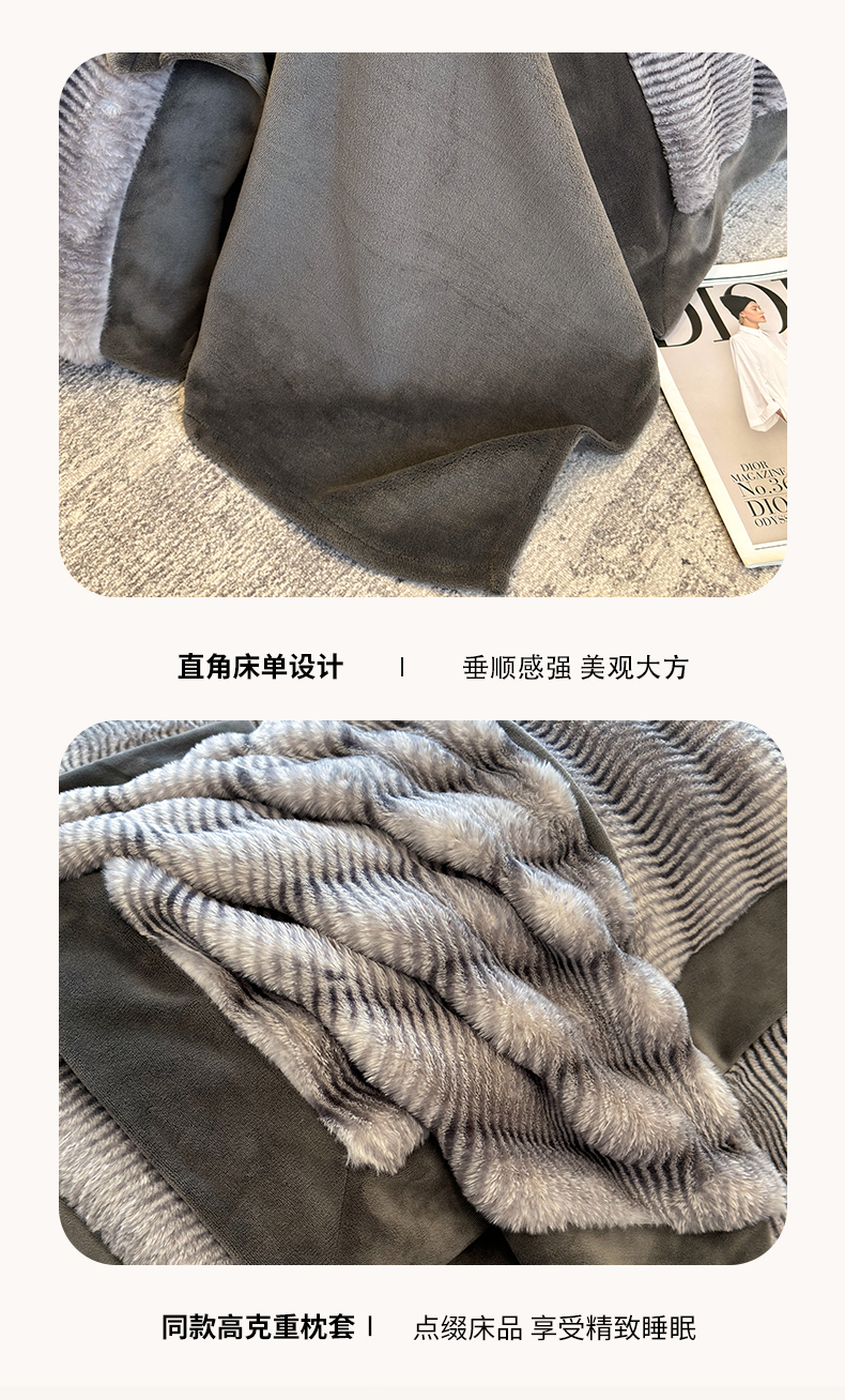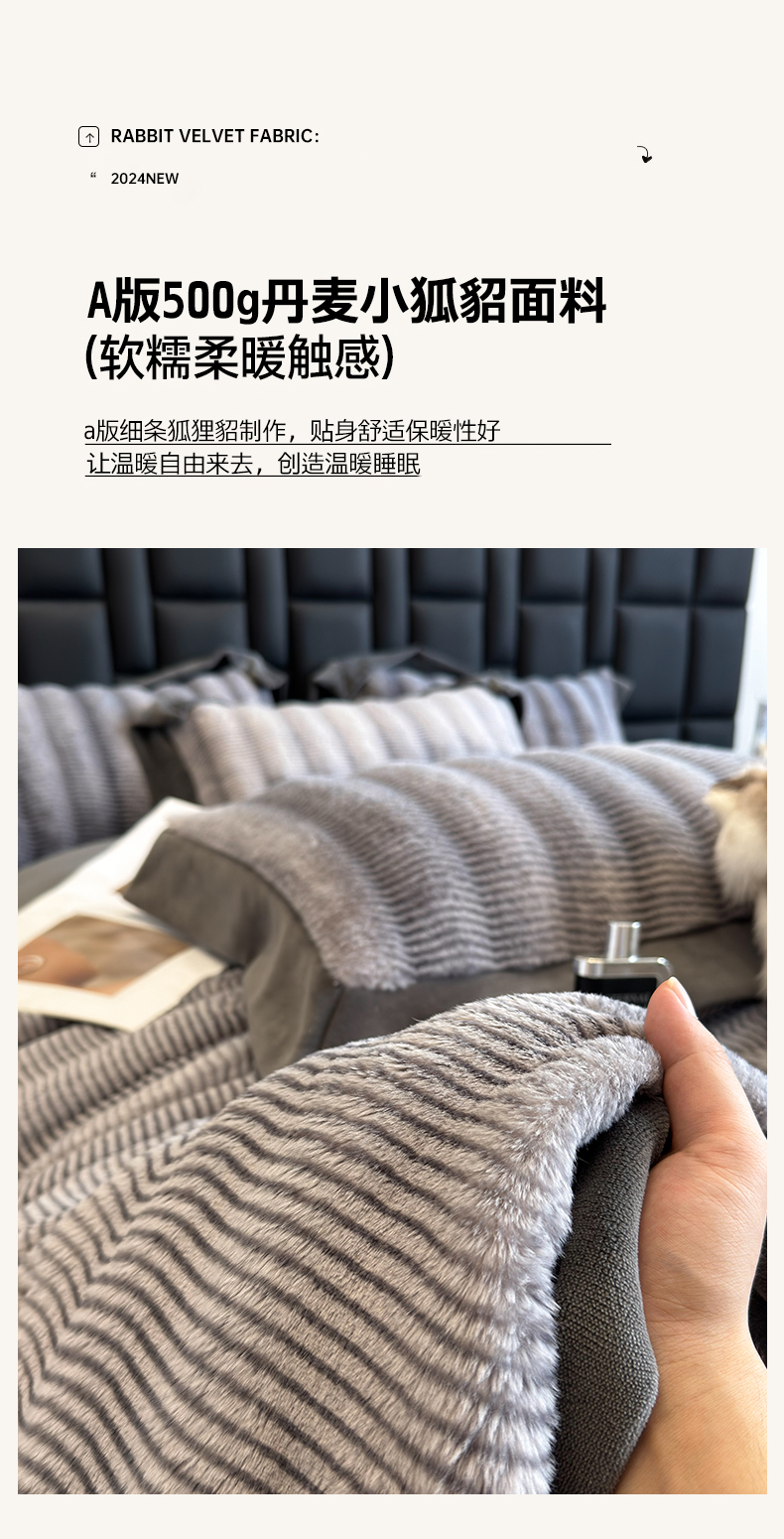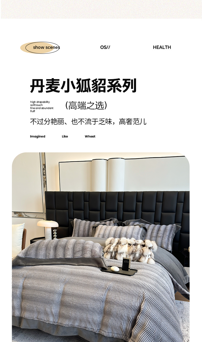 商品名称:若未家居 LOVEWE HOUSE 2025秋冬新款细条狐狸貂A版500克B版240克丹麦狐狸貂四件套-托马斯 托马斯 高级灰