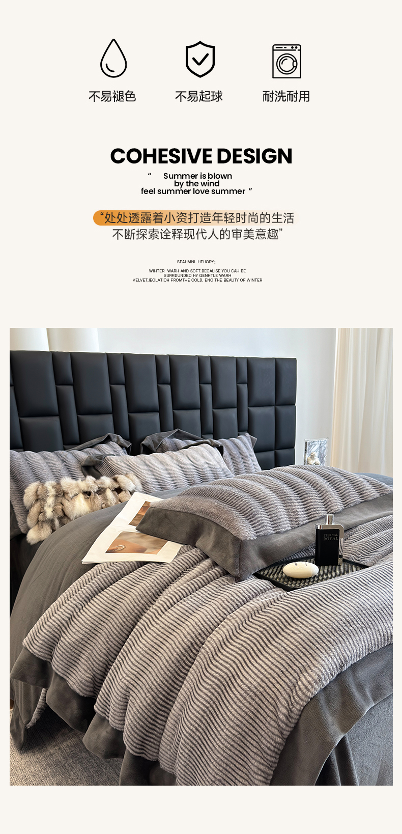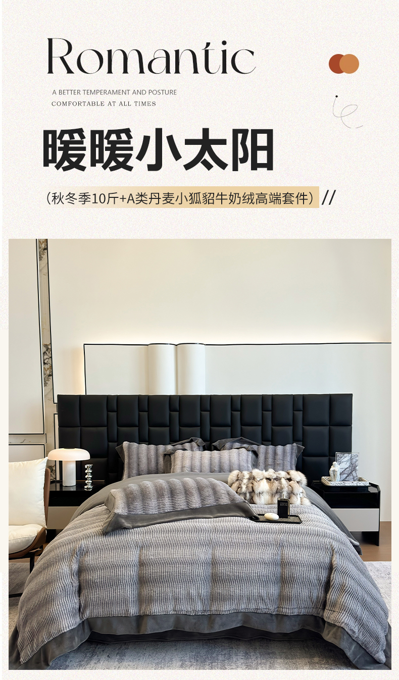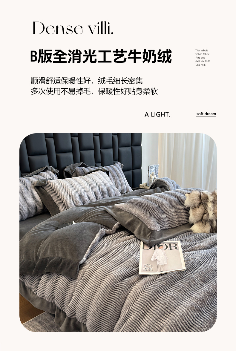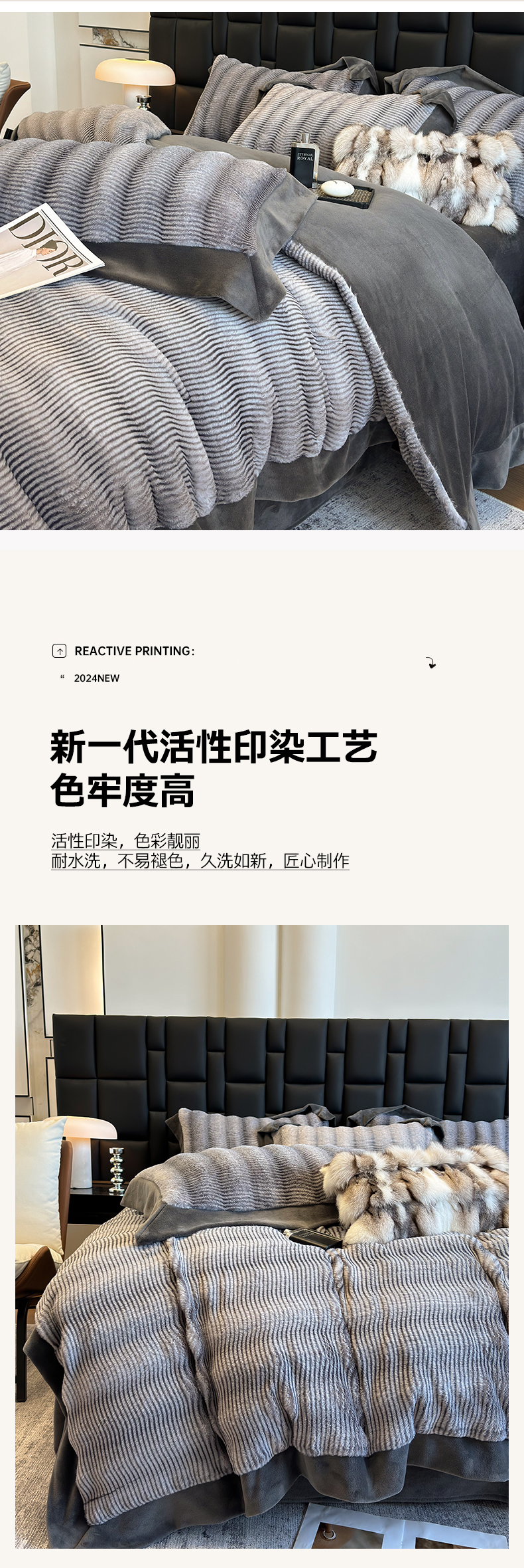 商品名称:若未家居 LOVEWE HOUSE 2025秋冬新款细条狐狸貂A版500克B版240克丹麦狐狸貂四件套-托马斯 托马斯 高级灰