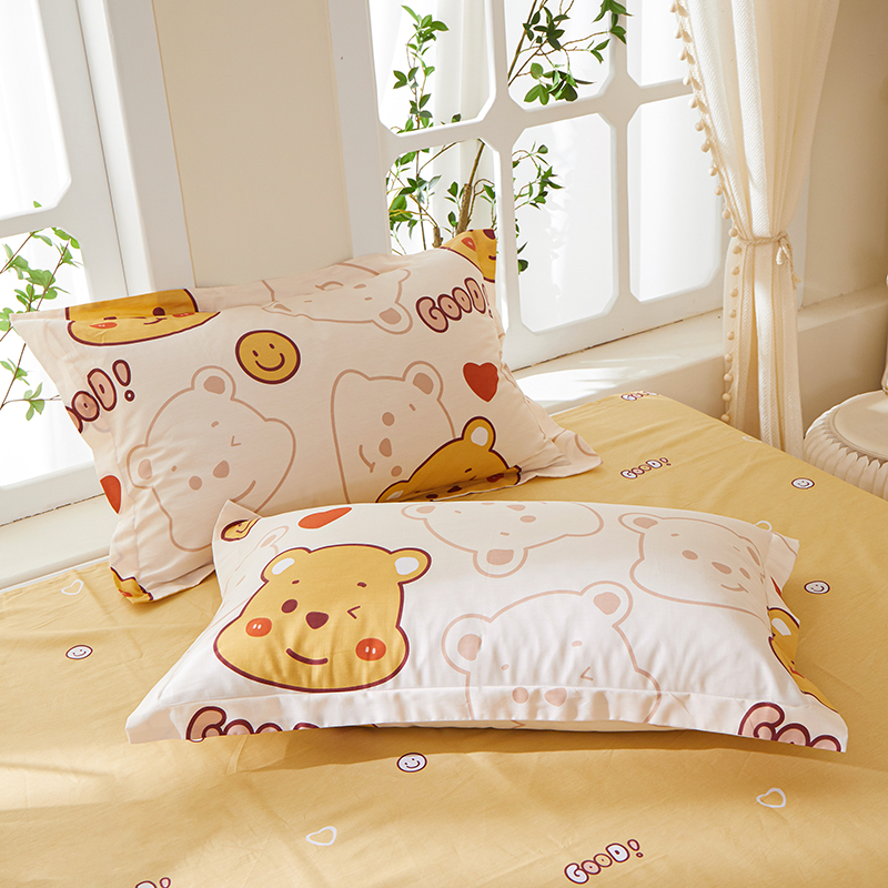钰伶 简约全棉12868印花纯棉单枕套欢乐萌熊