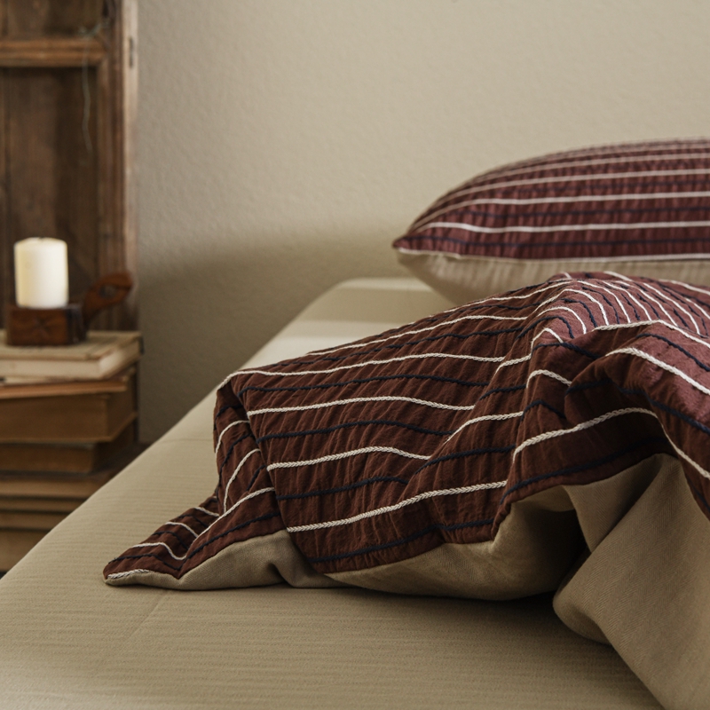 (总)简家居 2025新款亲肤舒适棉麻床盖三件套,棉麻提花