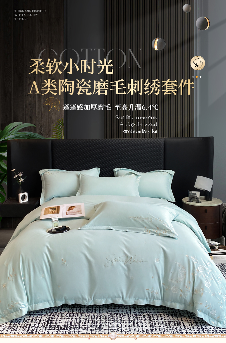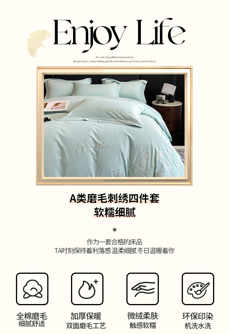 (总)家居1号家纺 2025新款全消光牛奶绒刺绣圣玛丽四件套,圣玛丽-粉豆沙,圣玛丽-果绿,圣玛丽-晴蓝,圣玛丽-绅士灰,圣玛丽-香槟金