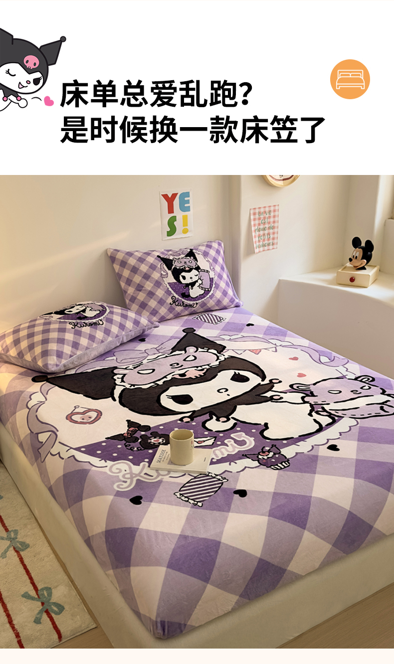 金爱家 2024新款大阪单品牛奶绒床笠 绒-D糖果库洛米