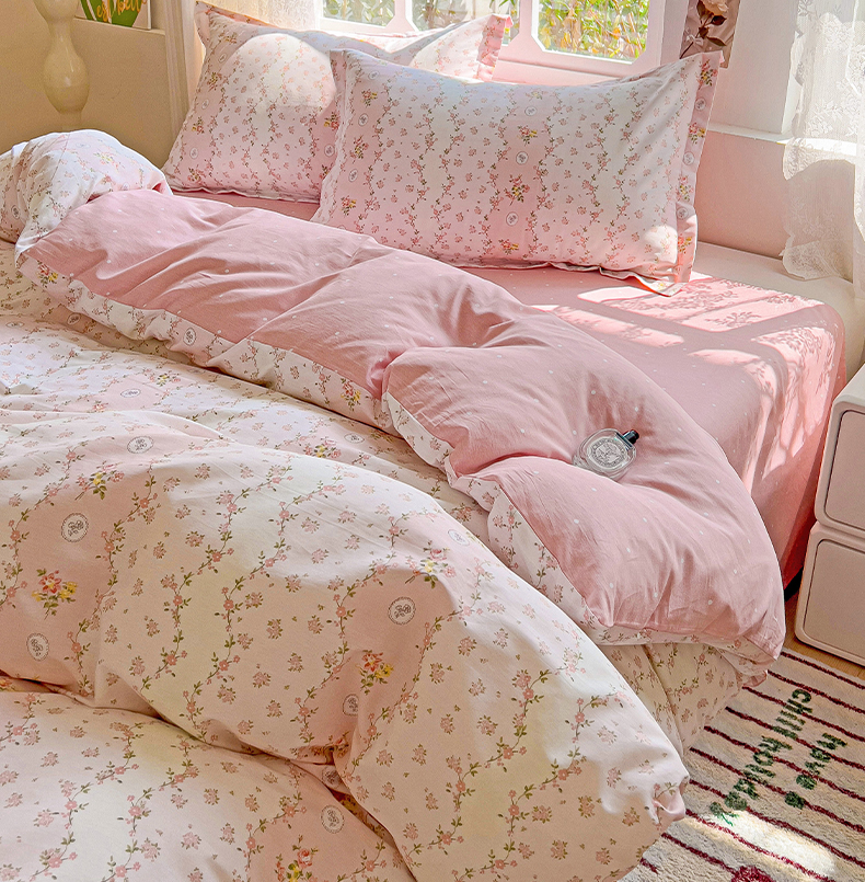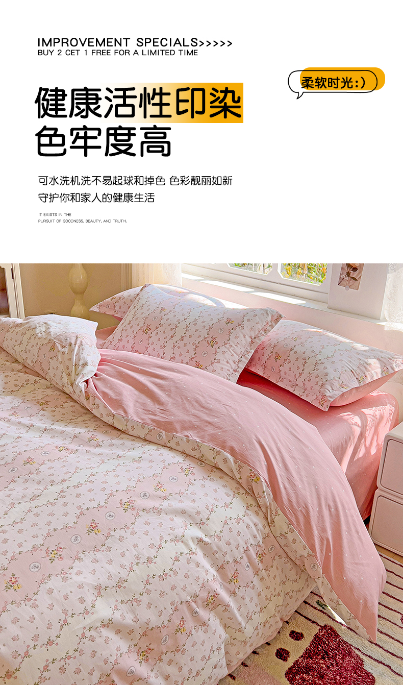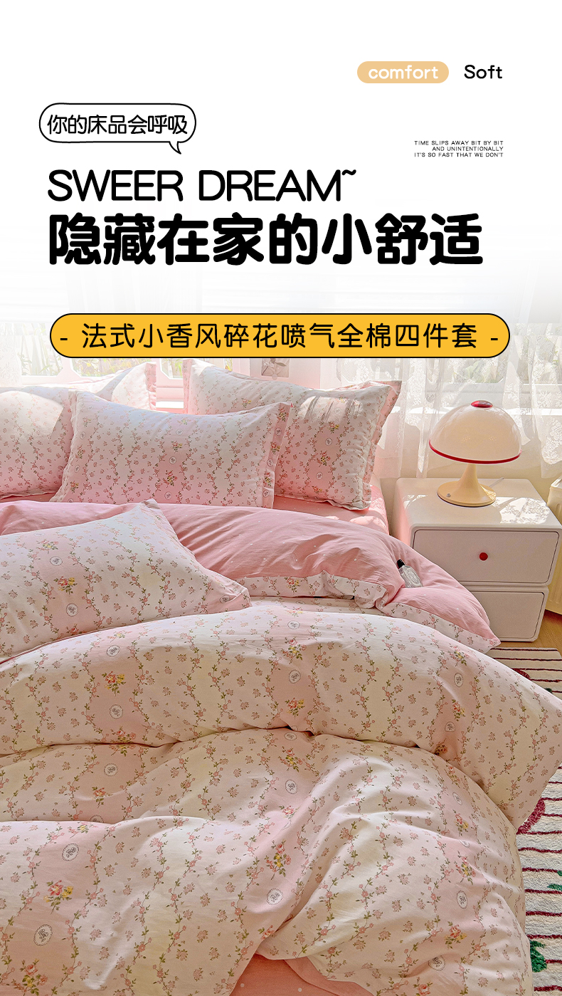 当前位置: 91家纺网 > 商品网购 > 床品套件 > 四件套 > 全棉普通四件套 > 卡普纯棉全棉四件套13070喷气床单款床笠款三件套 花间赋